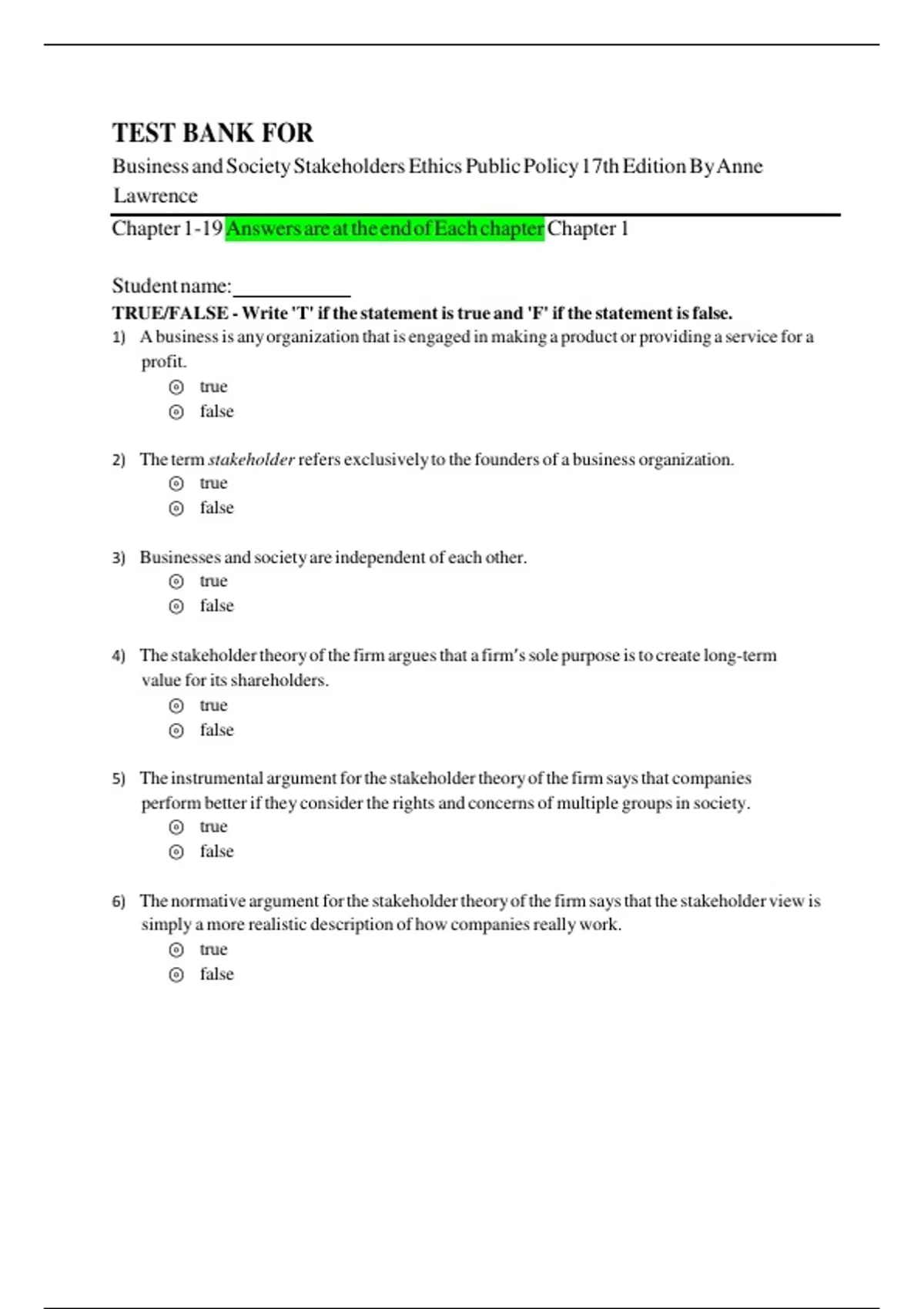 Business and Society Stakeholders Ethics Public Policy 17th Edition By Anne