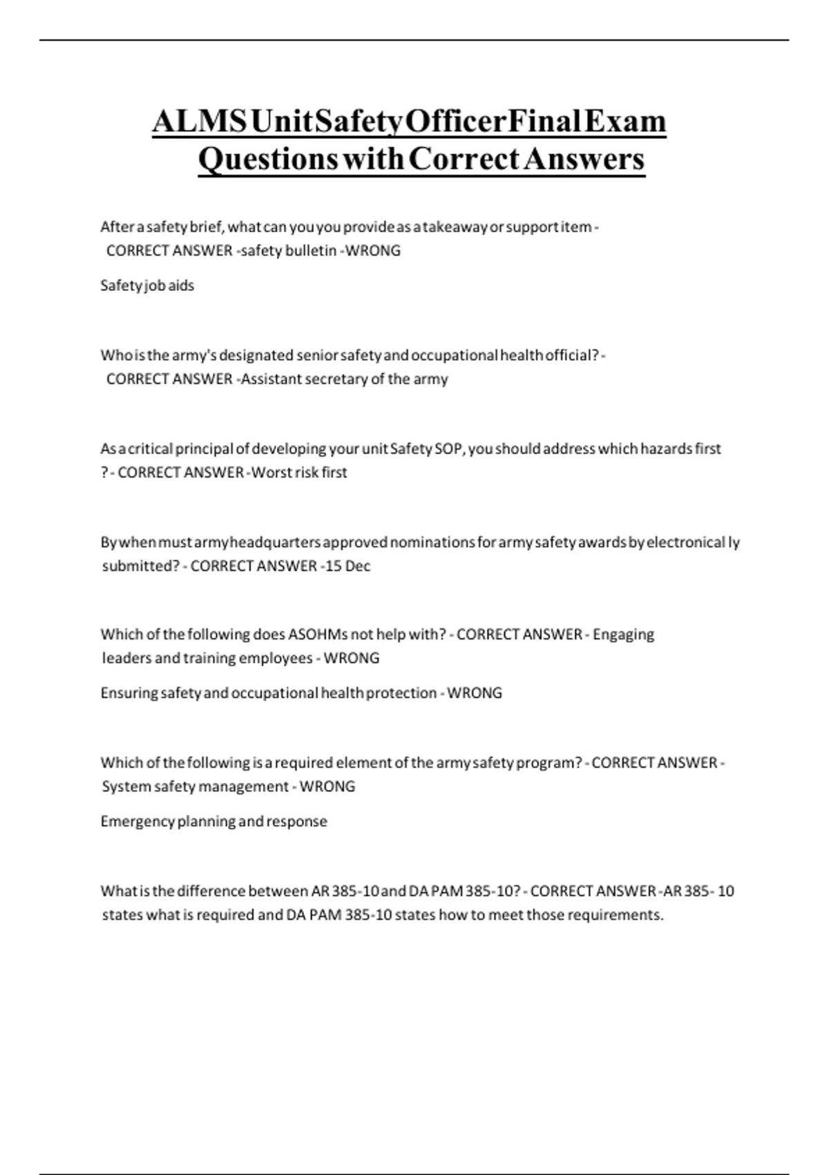 ALMS Unit Safety Officer Final Exam Questions with Correct AnswersALMS Unit Safety Officer Final Exam Questions with Correct AnswersALMS Unit Safety Officer Final Exam Questions with Correct AnswersALMS Unit Safety Officer Final Exam Questions with Correct AnswersALMS Unit Safety Officer Final Exam Questions with Correct AnswersALMS Unit Safety Officer Final Exam Questions with Correct AnswersALMS Unit Safety Officer Final Exam Questions with Correct AnswersALMS Unit Safety Officer Final Exam Questions with Correct AnswersALMS Unit Safety Officer Final Exam Questions with Correct Answers