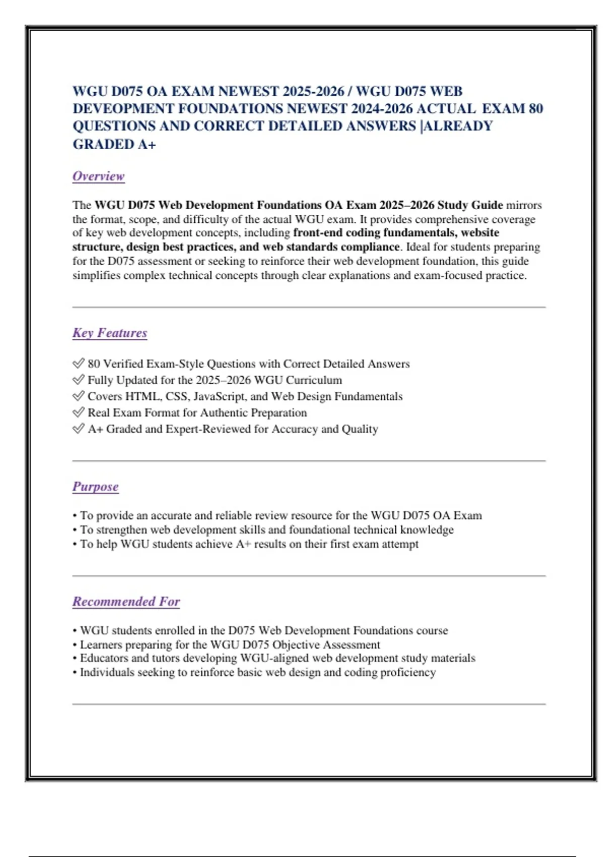The WGU D075 Web Development Foundations OA Exam 2025–2026 Study Guide mirrors