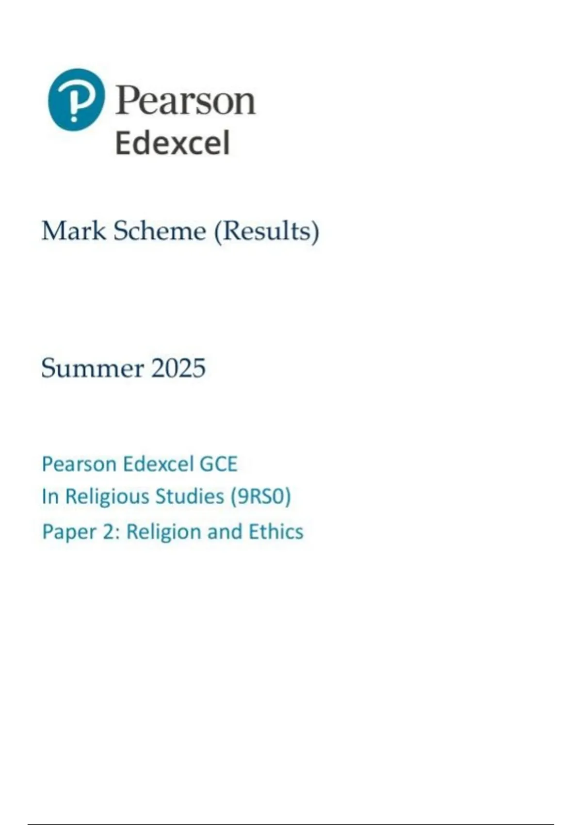 EDEXCEL religious studies 9rs0-02 paper 2- religion and ethics mark scheme june-2025