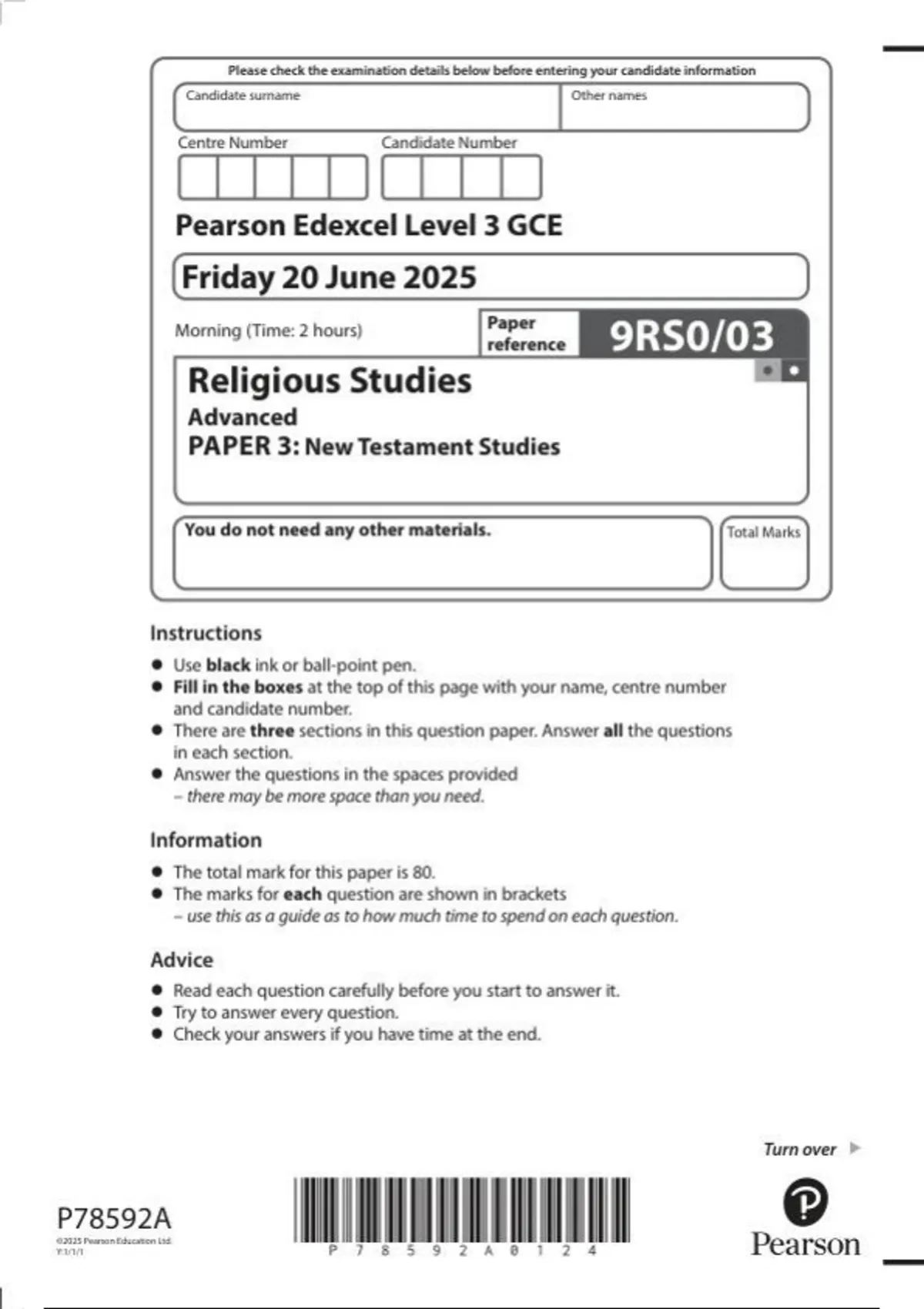 EDEXCEL religious studies 9rs0-03 paper 3- new testament studies june-2025