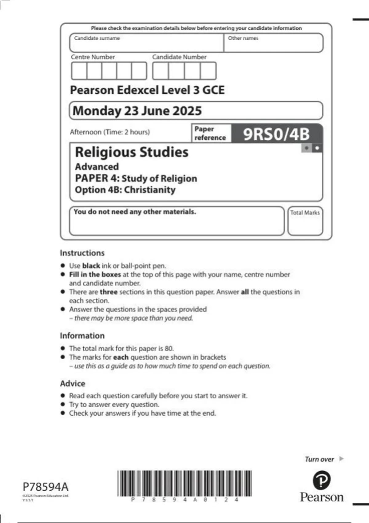 edexcel religious studies 9rs0 4b christianity june 2025edexcel