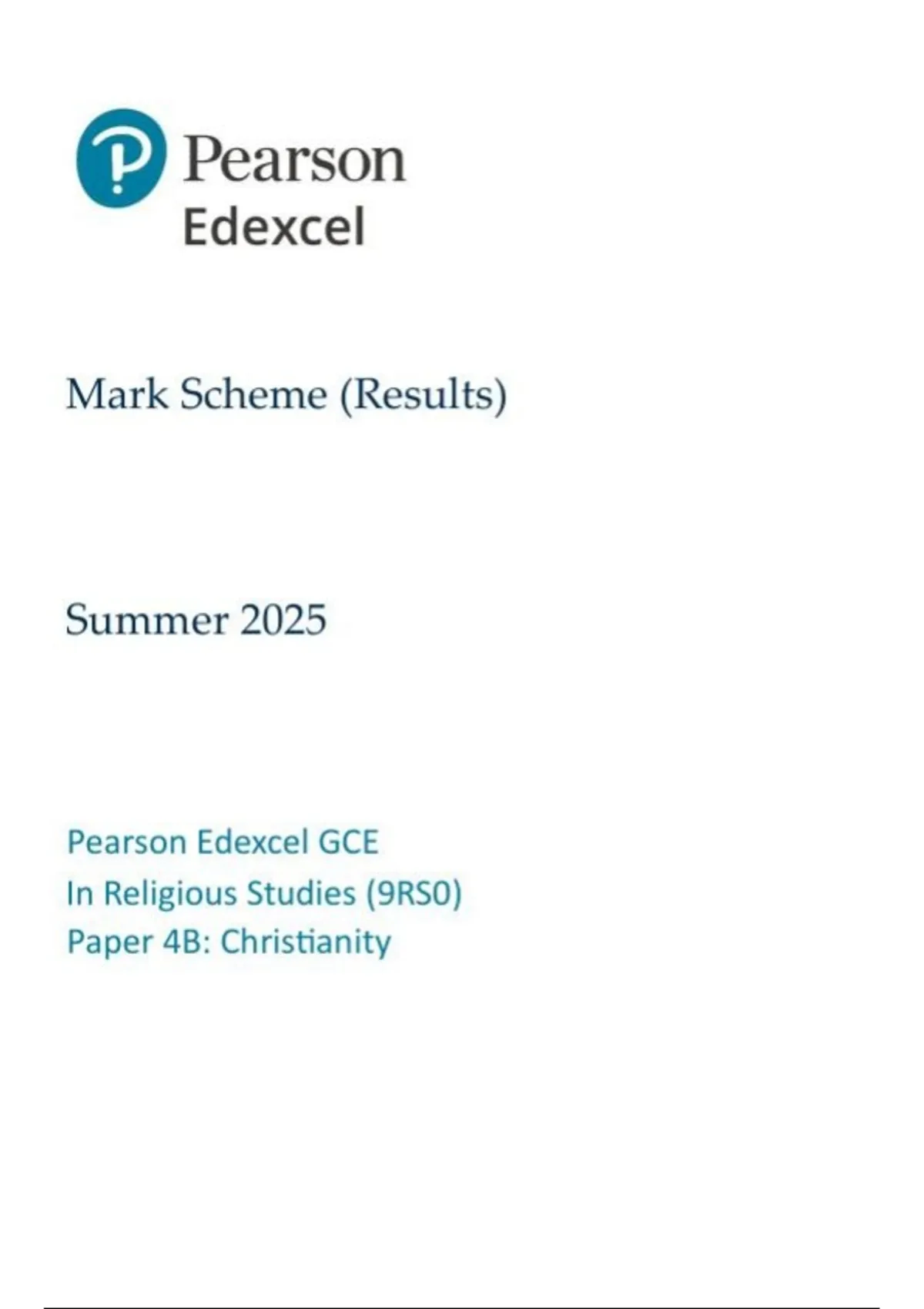 EDEXCEL religious studies 9rs0-4b christianity mark scheme june-2025