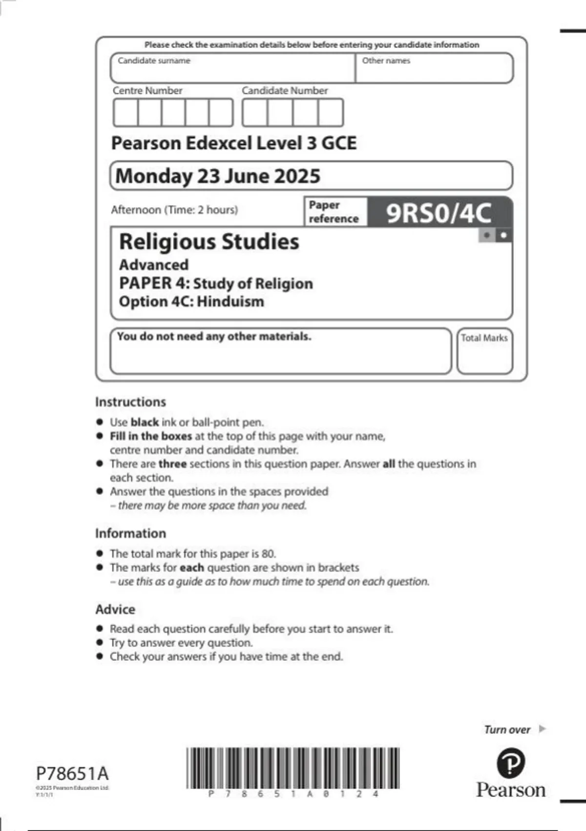 EDEXCEL religious studies 9rs0-4c hinduism june-2025