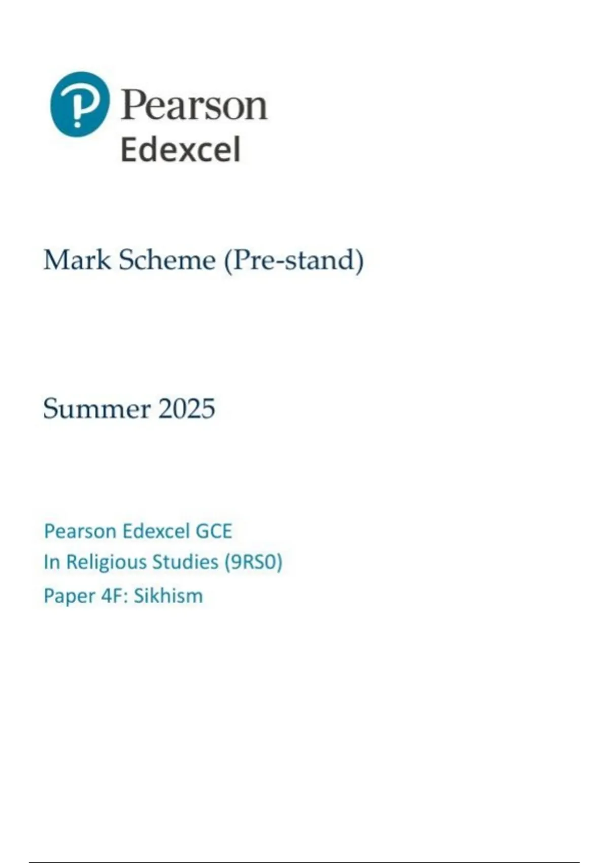 EDEXCEL religious studies 9rs0-4f sikhism mark scheme june-2025