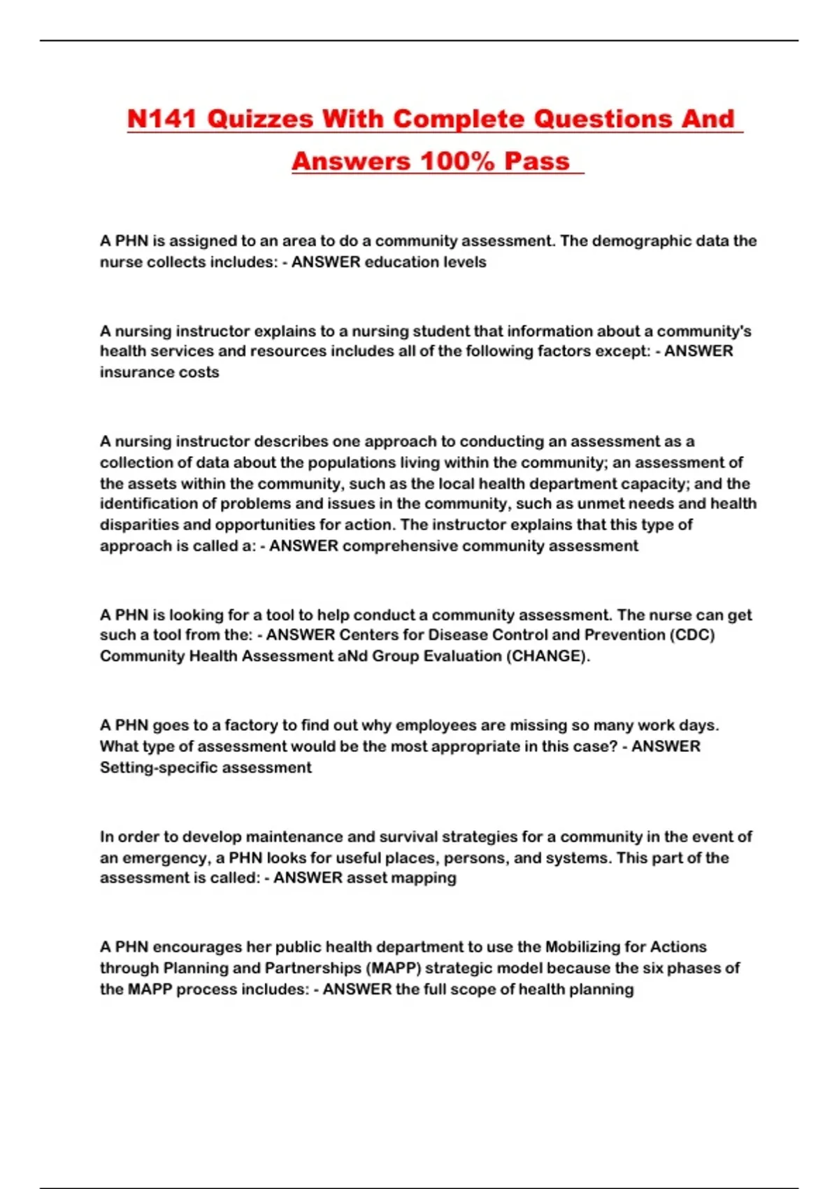 N141 Quizzes With Complete Questions And