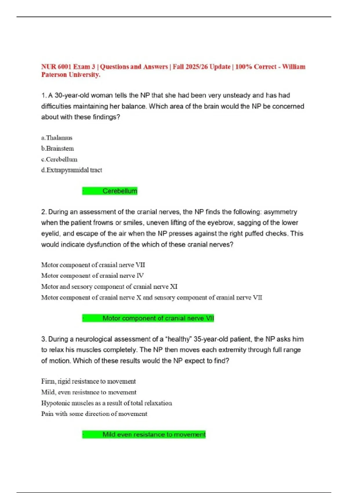 NUR 6001 Exam 3 | Questions and Answers | Fall 2025/26 Update | 100% Correct - William Paterson University.