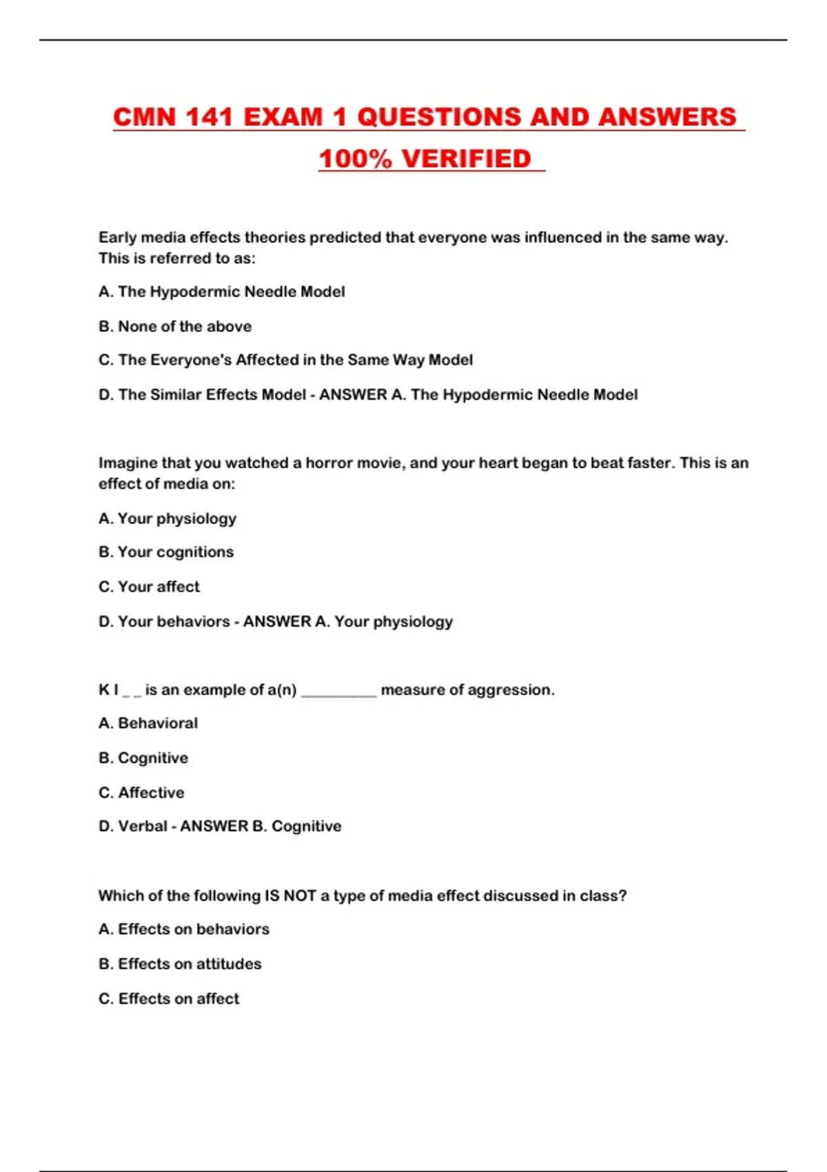CMN 141 EXAM 1 QUESTIONS AND ANSWERS