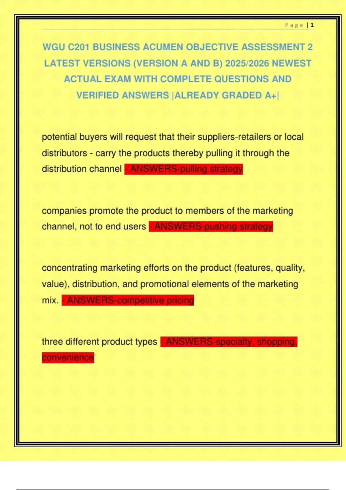 WGU C201 BUSINESS ACUMEN OBJECTIVE ASSESSMENT 2