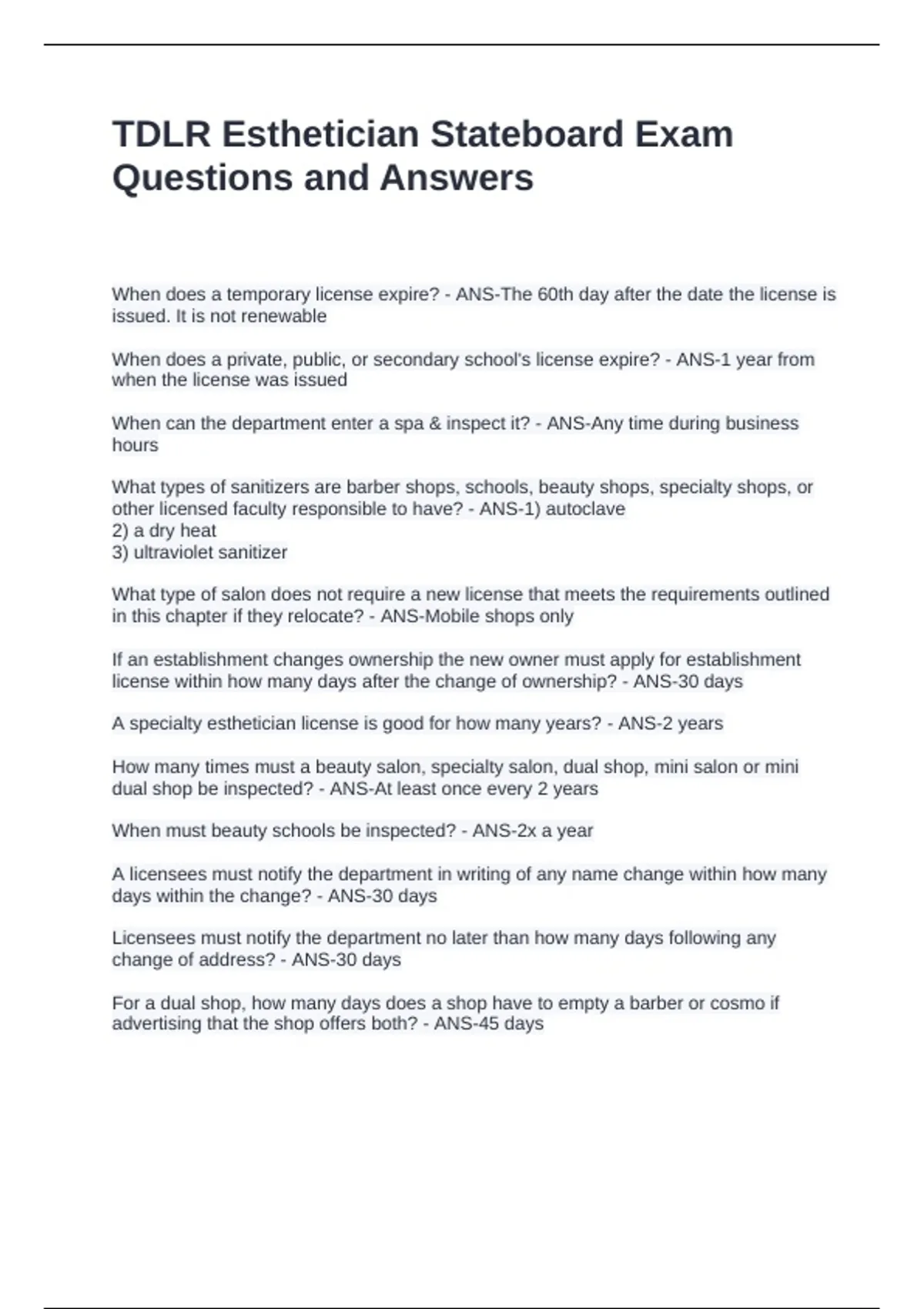 TDLR Esthetician Stateboard Exam