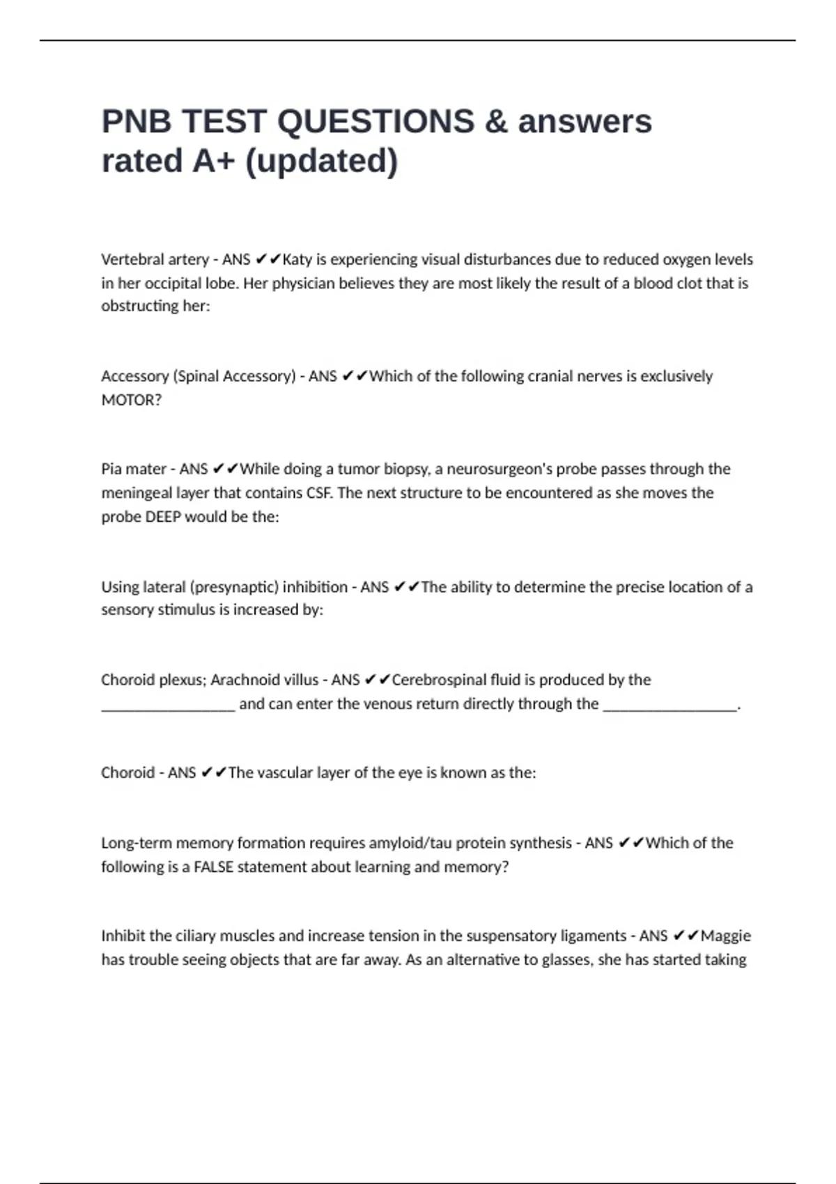 PNB TEST QUESTIONS & answers rated A+ (updated)
