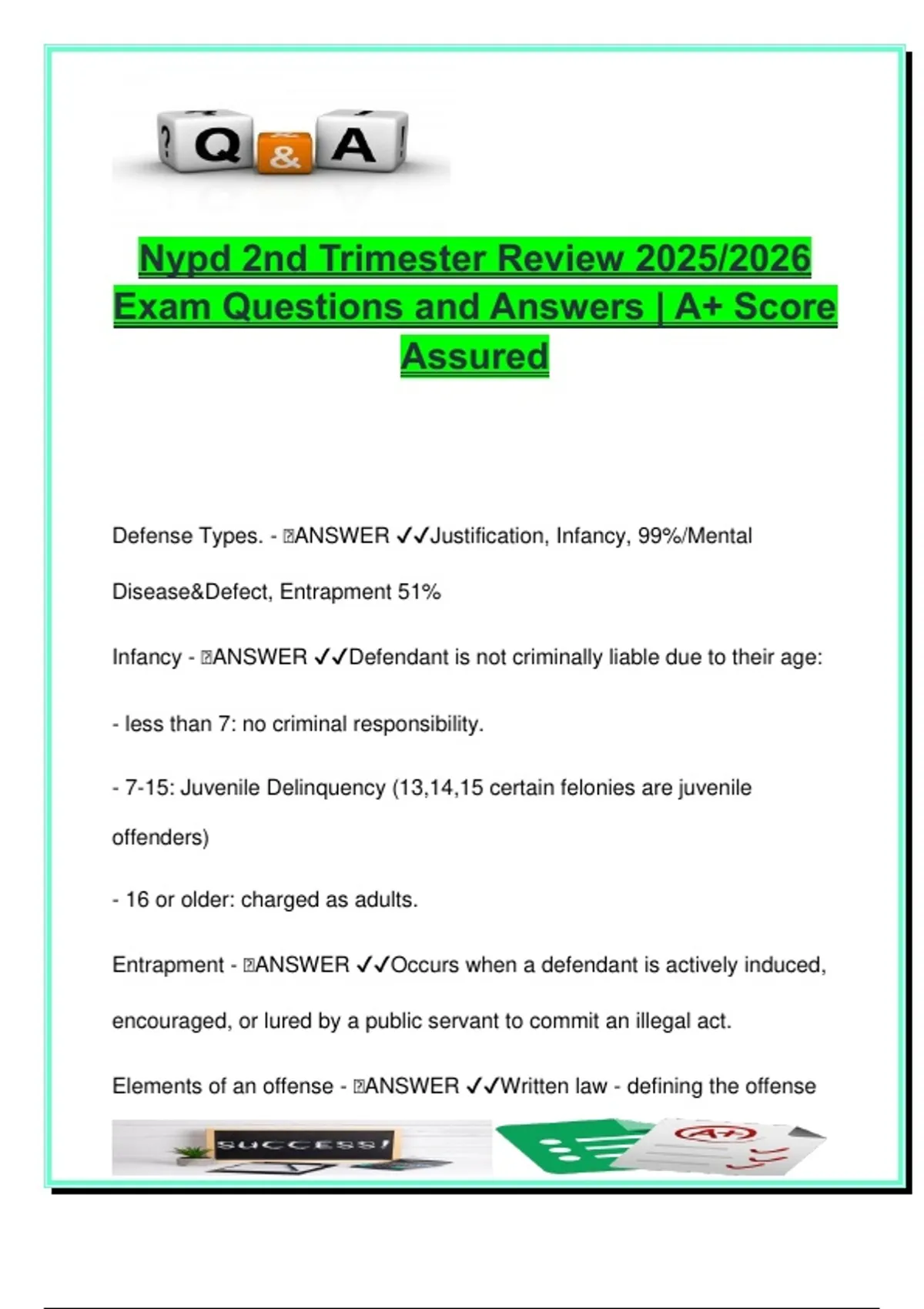 Elements of an offense - 🧠ANSWER ✔✔Written law - defining the offense
