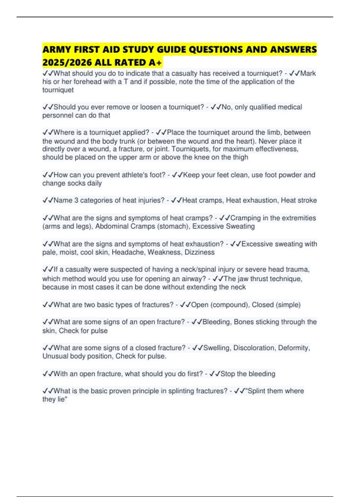 ✔✔Name 3 categories of heat injuries? - ✔✔Heat cramps, Heat exhaustion, Heat stroke