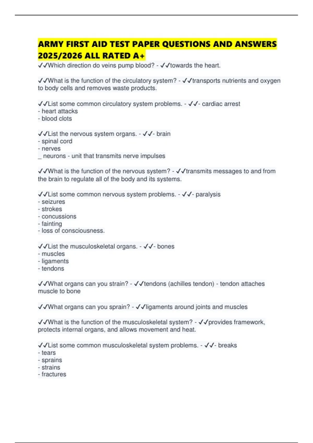 ✔✔List the musculoskeletal organs. - ✔✔- bones