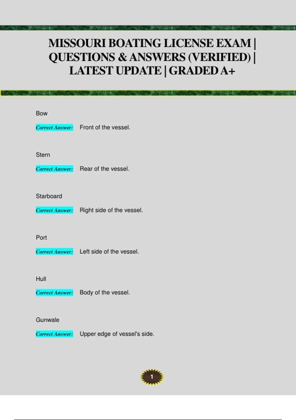 Prepare for the Missouri Boating License Exam 2025/2026 with solution. Access updated study materials, safety rules, and practice questions to pass your boating certification test with confidence.