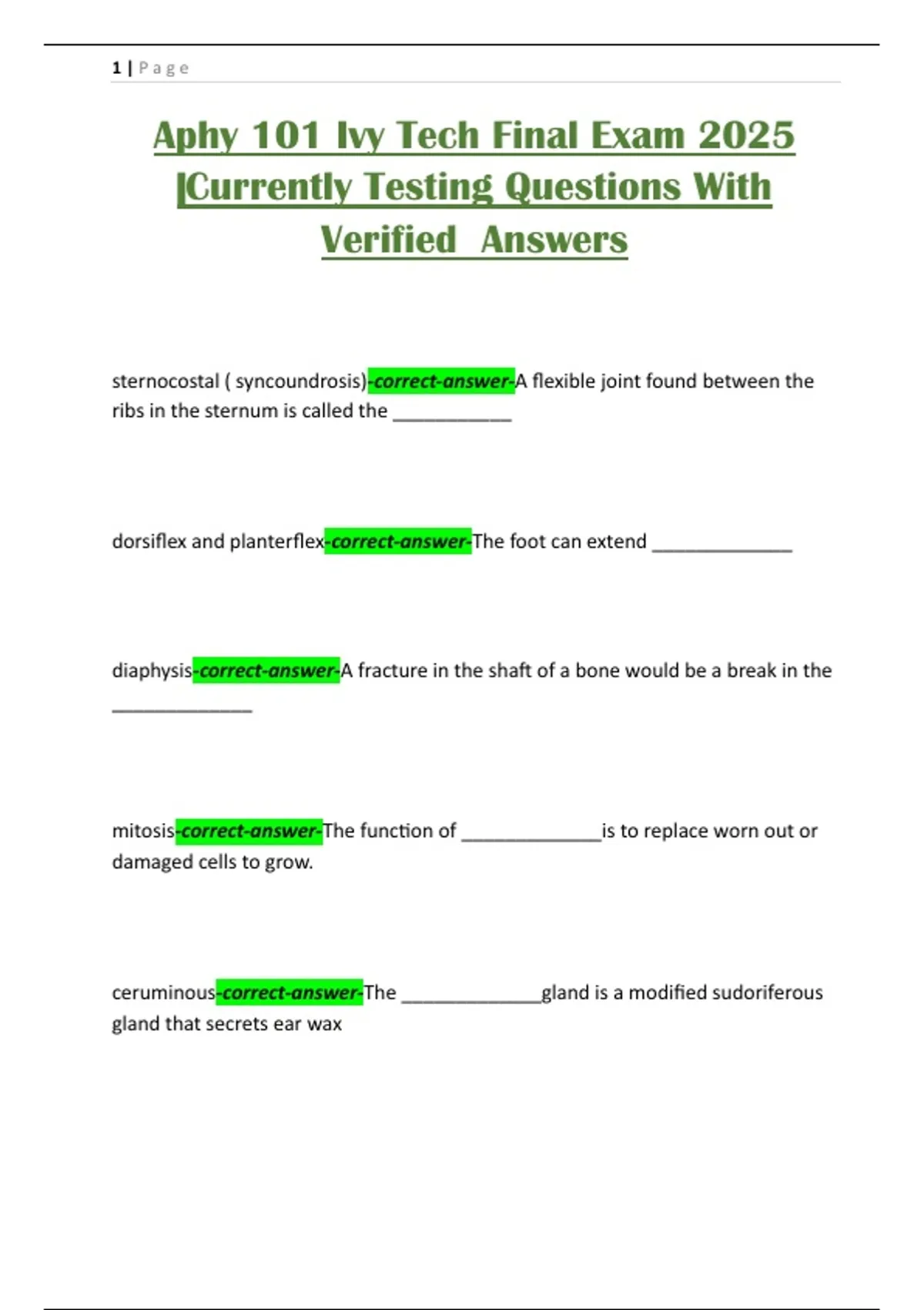 Aphy 101 Ivy Tech Final Exam 2025 |Currently Testing Questions With Verified Answers
