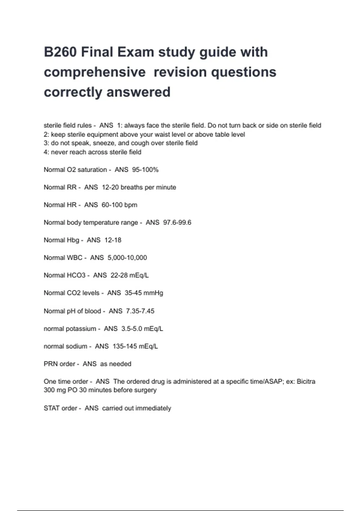 B260 Final Exam study guide with