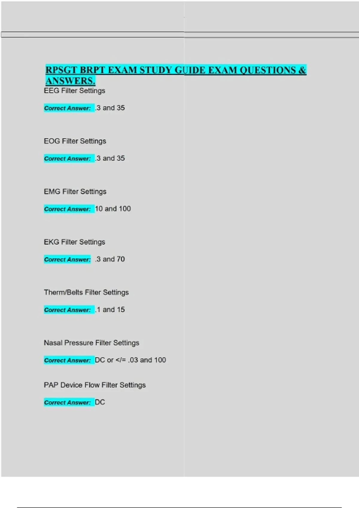 RPSGT BRPT EXAM STUDY GUIDE EXAM QUESTIONS & ANSWERS.