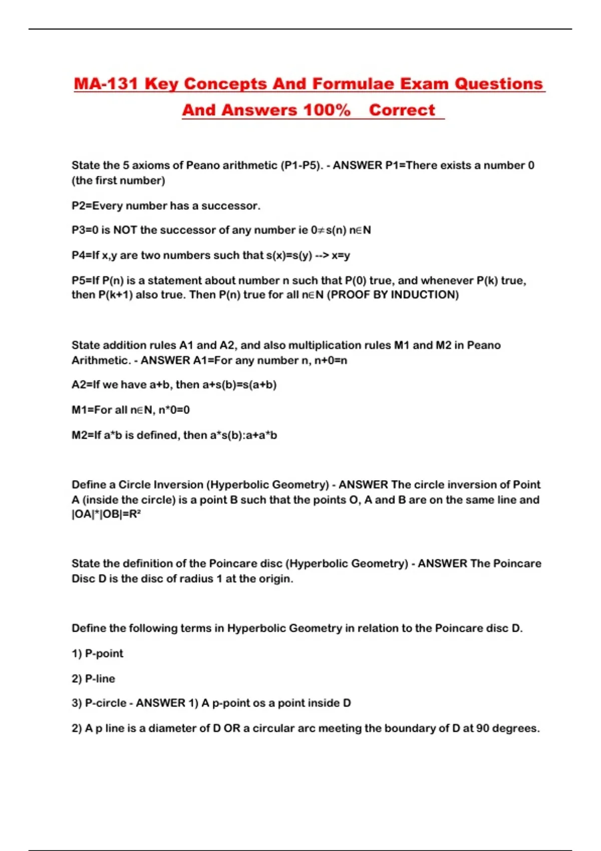 MA-131 Key Concepts And Formulae Exam Questions And Answers 100% Correct ...