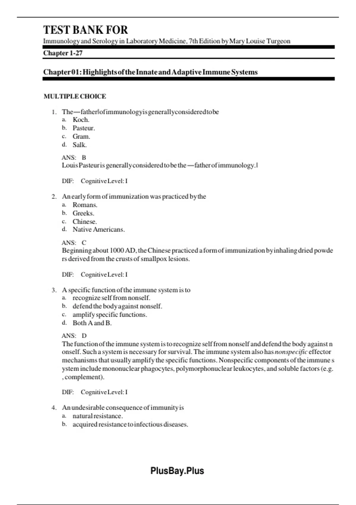 Chapter 01: Highlights of the Innate and Adaptive Immune Systems