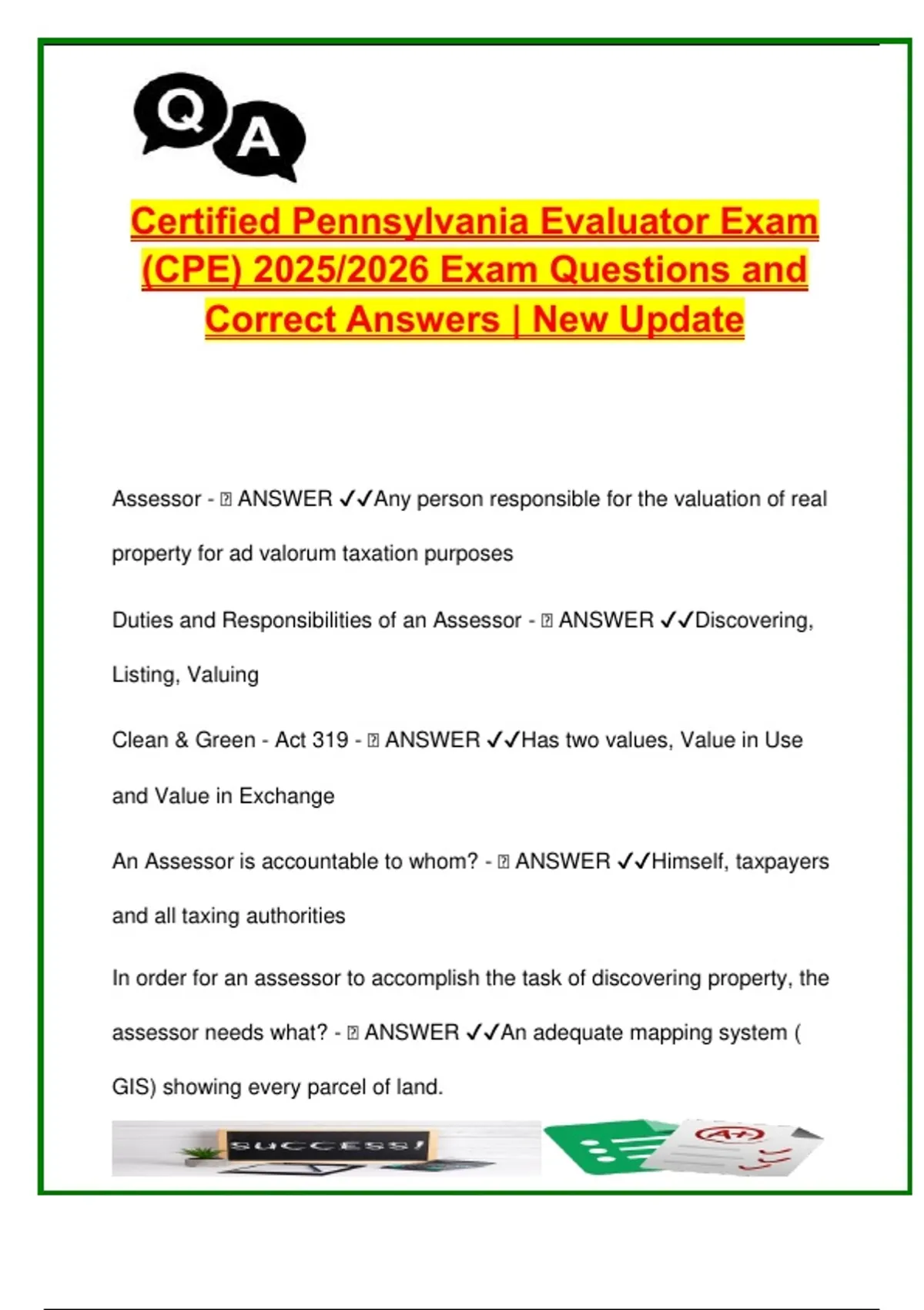 Certified Pennsylvania Evaluator Exam | 180+ Questions on Valuation Principles, Assessment Law, Market Approaches | 2025/2026