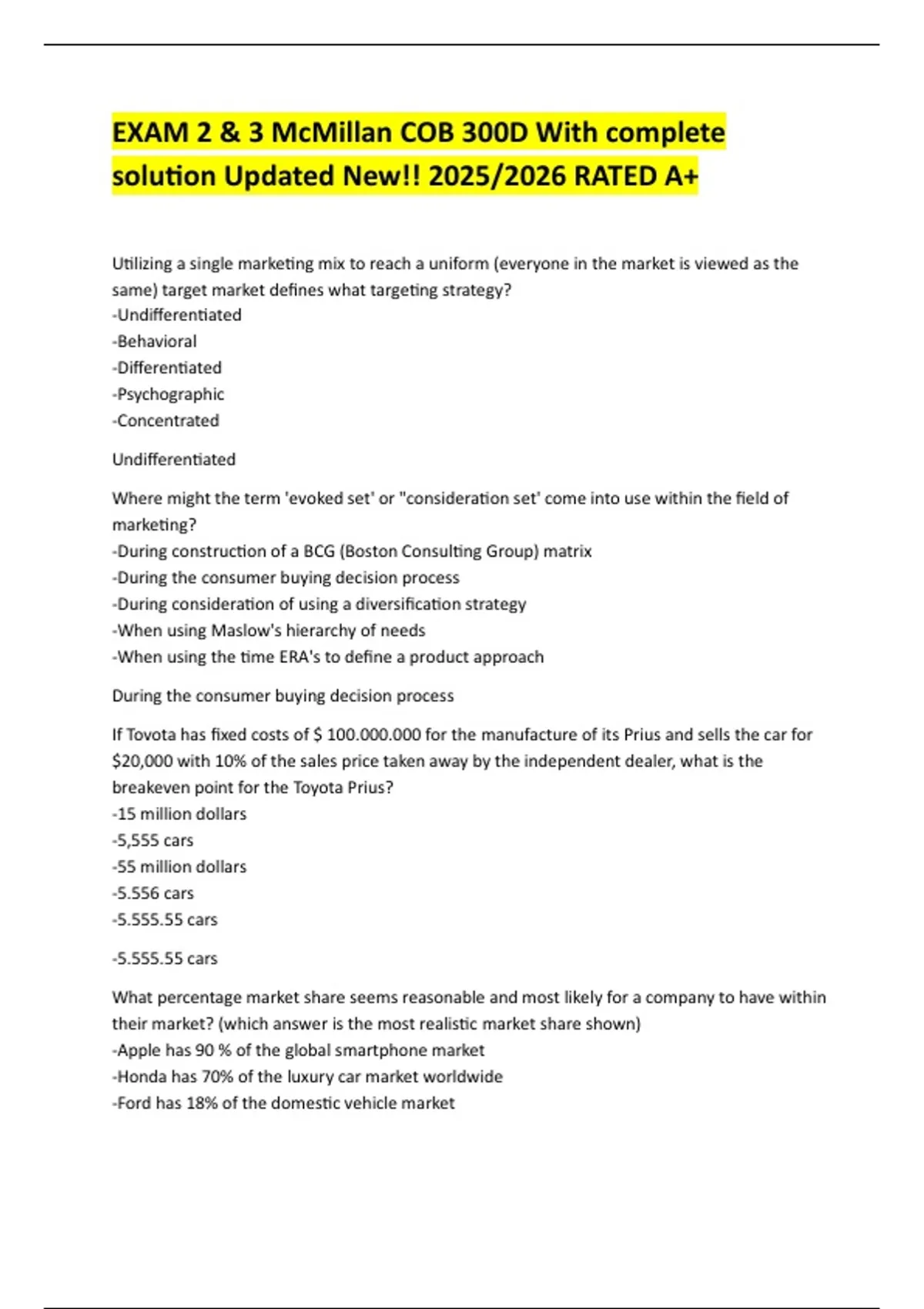 EXAM 2 & 3 McMillan COB 300D With complete solution Updated New!! 2025/2026 RATED A+ EXAM 2 & 3 McMillan COB 300D With complete solution Updated New!! 2025/2026 RATED A+ EXAM 2 & 3 McMillan COB 300D With complete solution Updated New!! 2025/2026 RATED A+ EXAM 2 & 3 McMillan COB 300D With complete solution Updated New!! 2025/2026 RATED A+ EXAM 2 & 3 McMillan COB 300D With complete solution Updated New!! 2025/2026 RATED A+ EXAM 2 & 3 McMillan COB 300D With complete solution Updated New!! 2025/2026 RATED A+ EXAM 2 & 3 McMillan COB 300D With complete solution Updated New!! 2025/2026 RATED A+ V