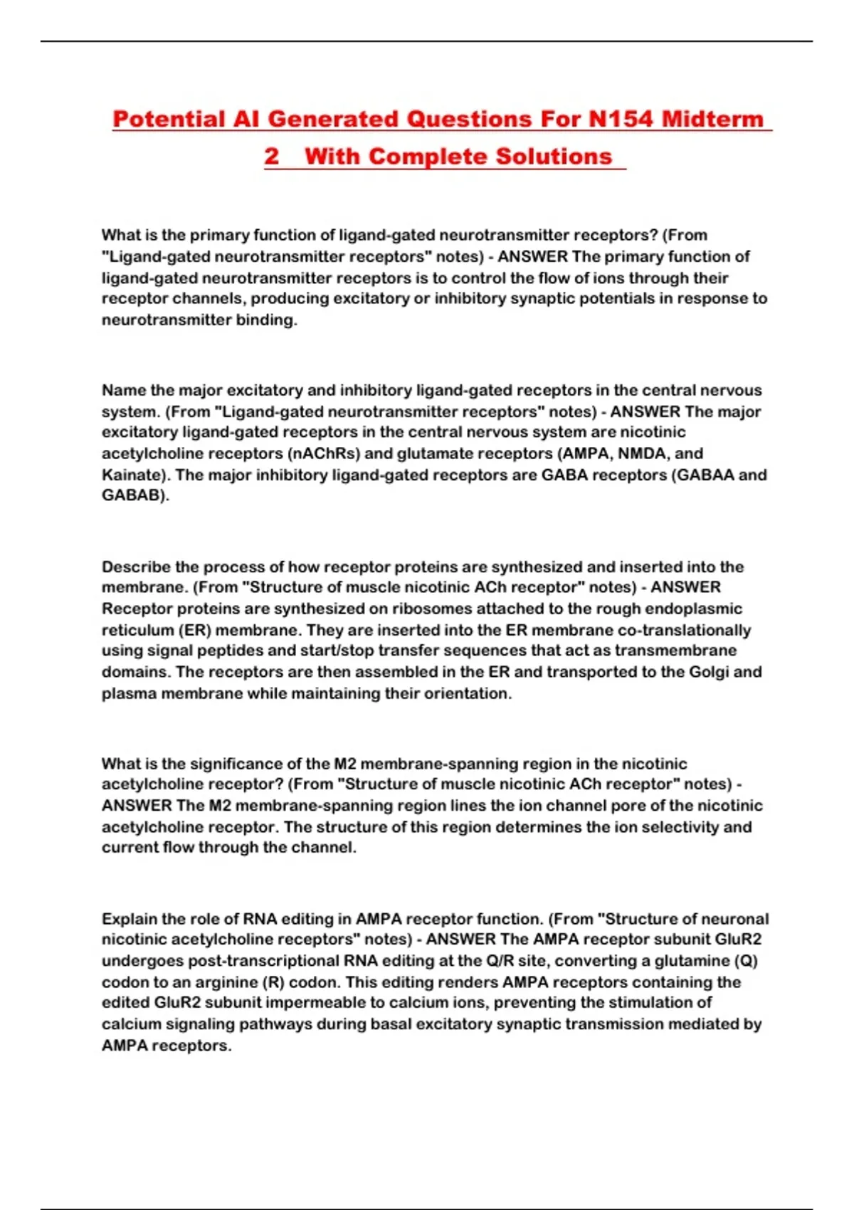 nicotinic acetylcholine receptors" notes) - ANSWER The AMPA receptor subunit GluR2