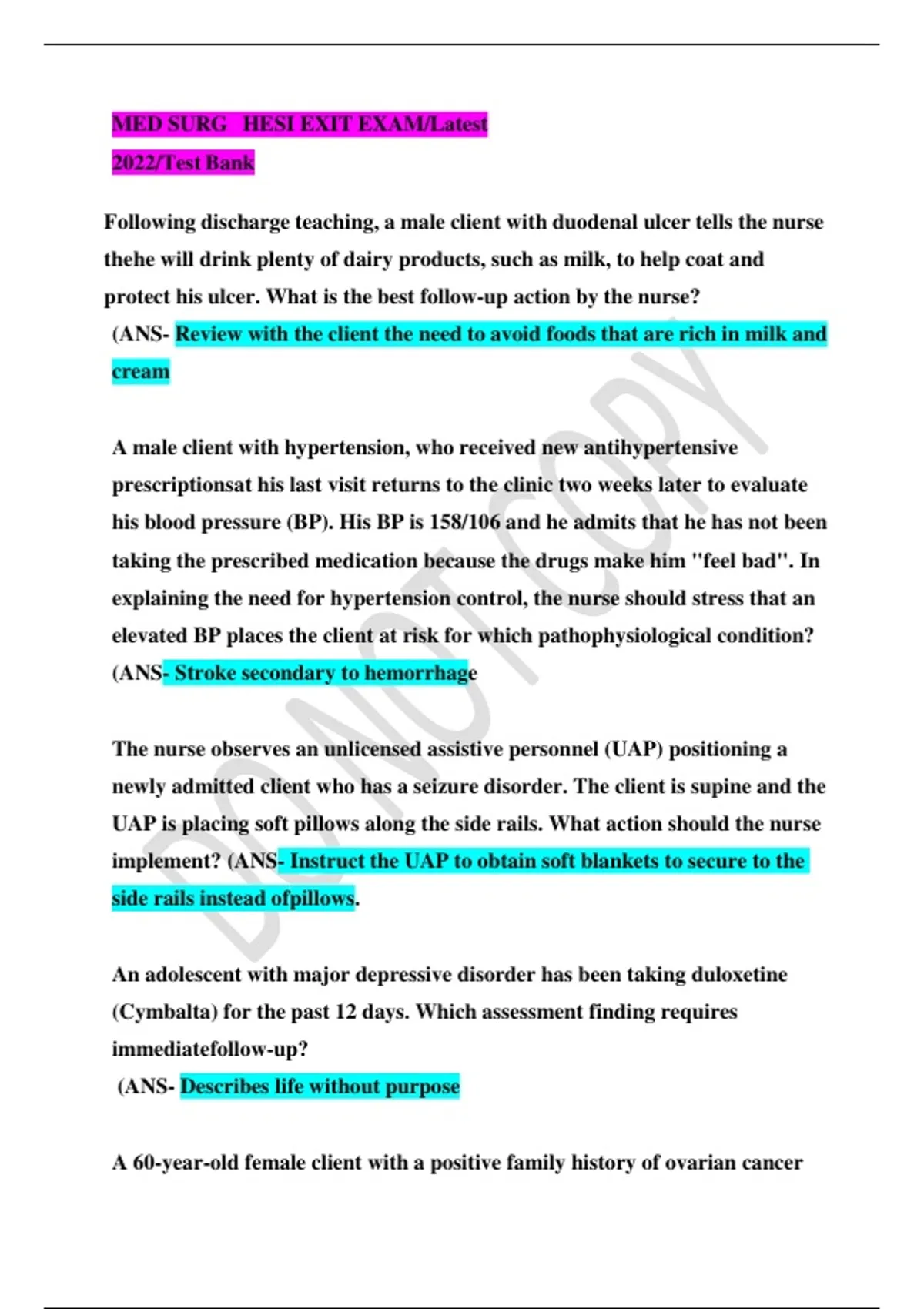 Medical-Surgical HESI Exit Exam | Complete Test Bank with Rationales | Latest Update
