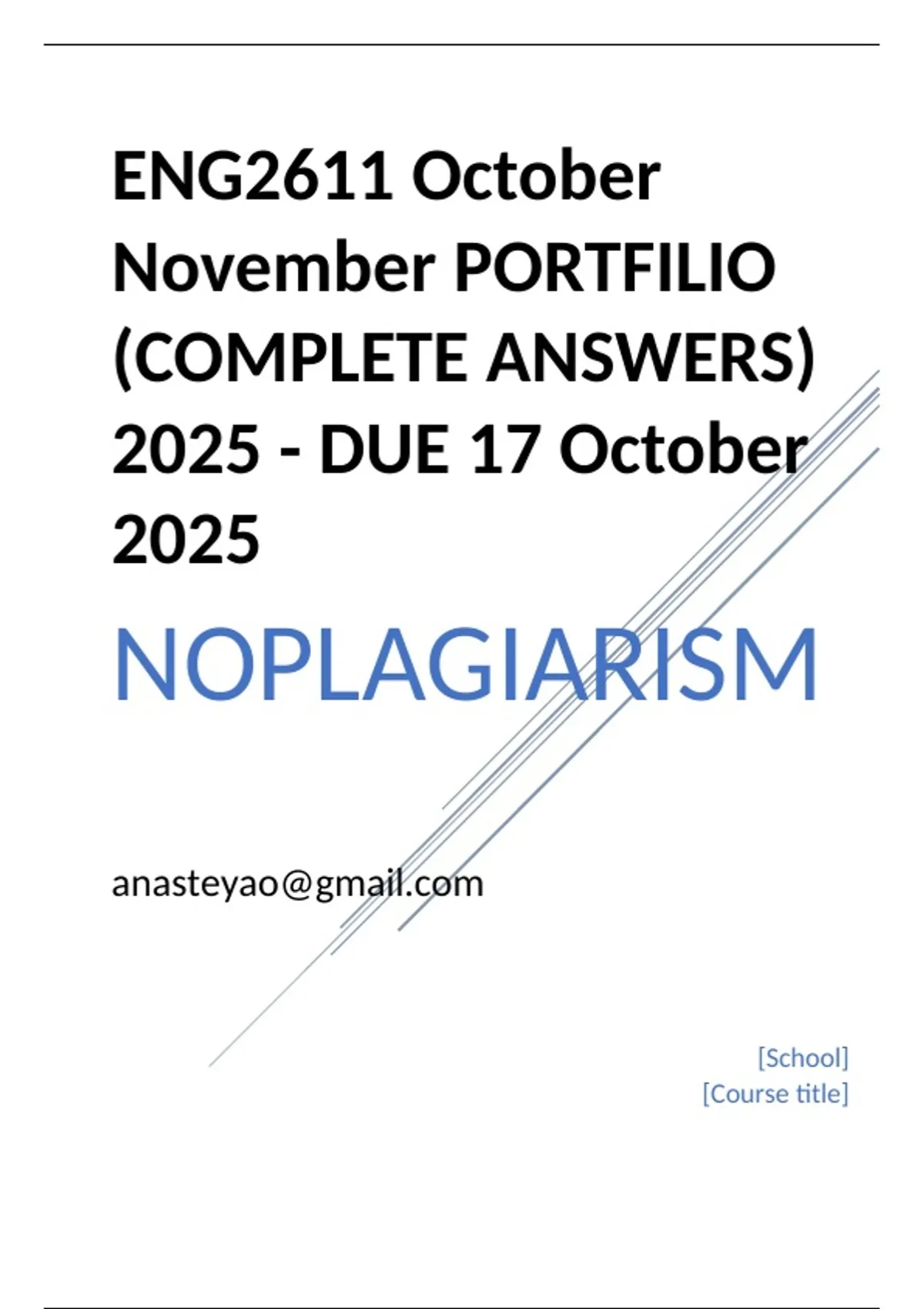 ENG2611 October November PORTFILIO (COMPLETE ANSWERS) 2025 - DUE 17 October 2025;