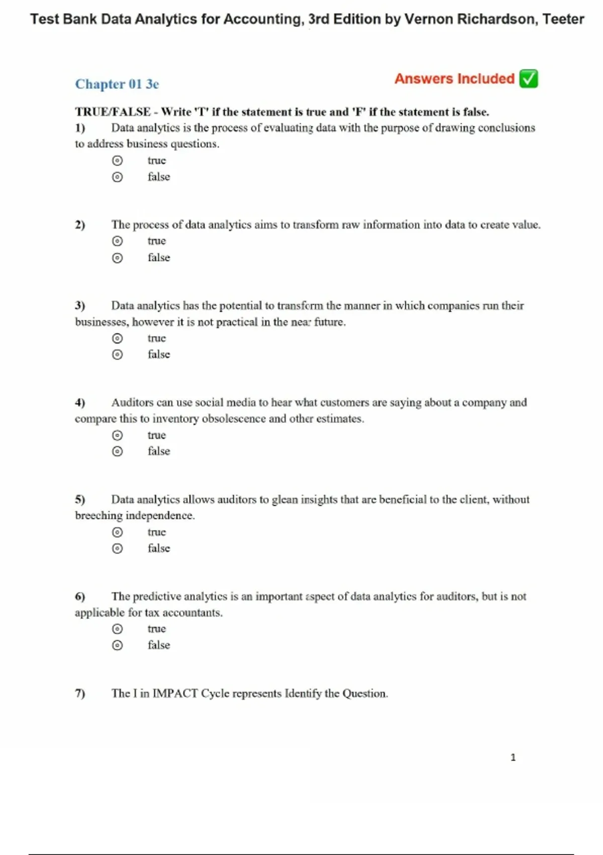 Test Bank - Data Analytics for Accounting, 3rd Edition By Vernon Richardson