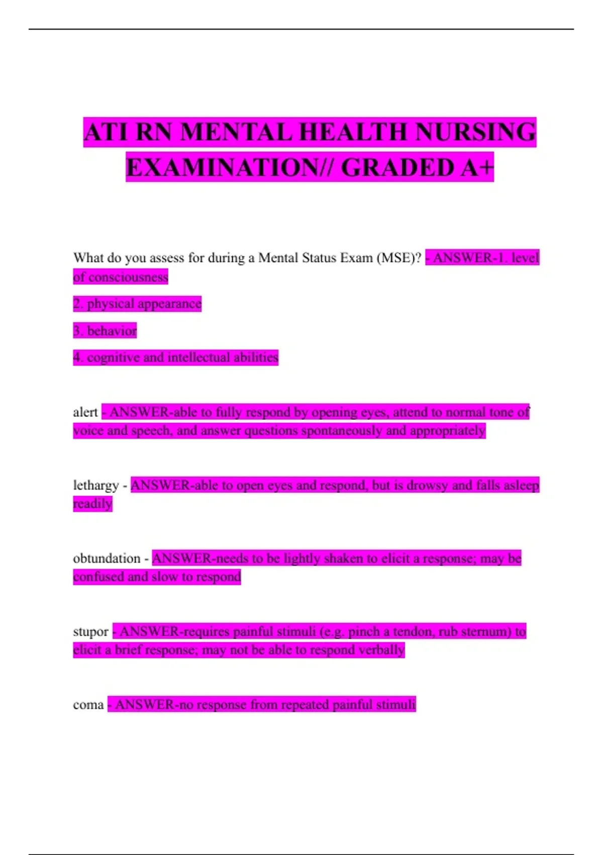 ATI RN MENTAL HEALTH NURSING