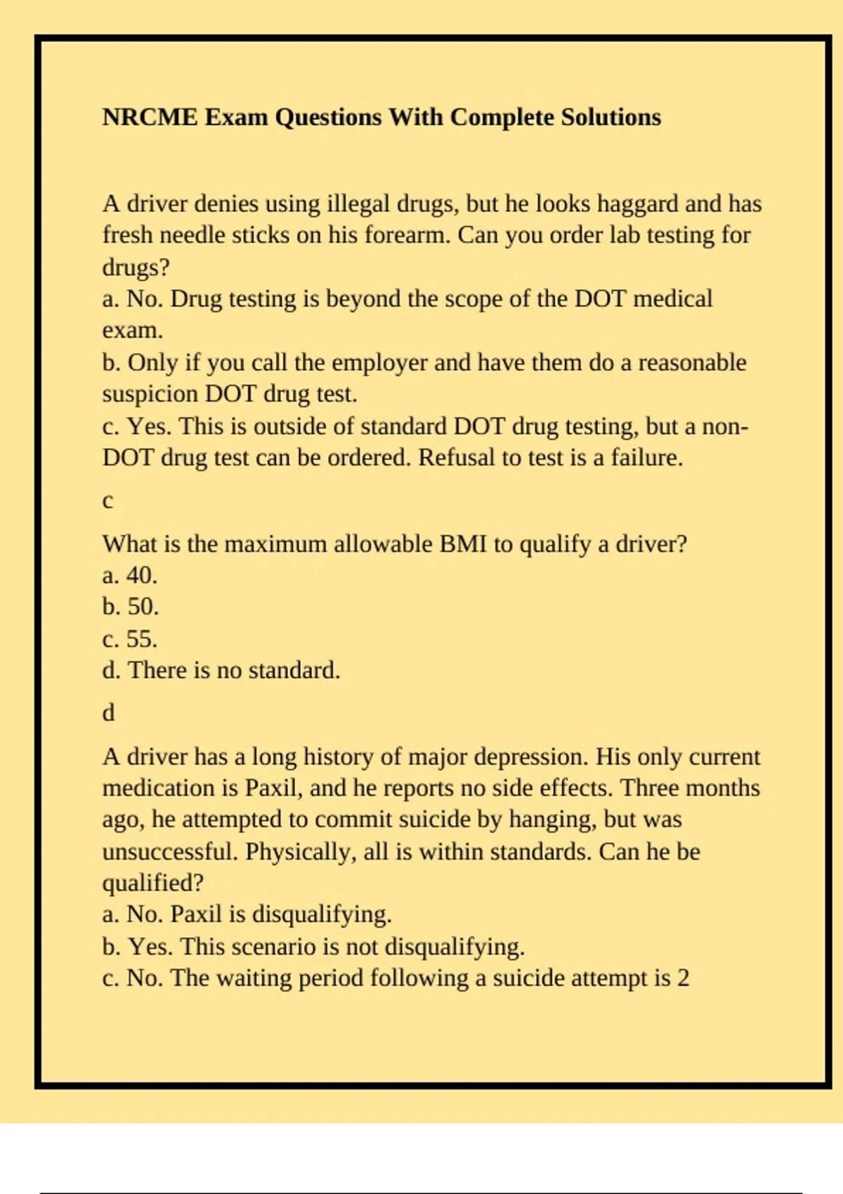 c. Yes. This is outside of standard DOT drug testing, but a non-