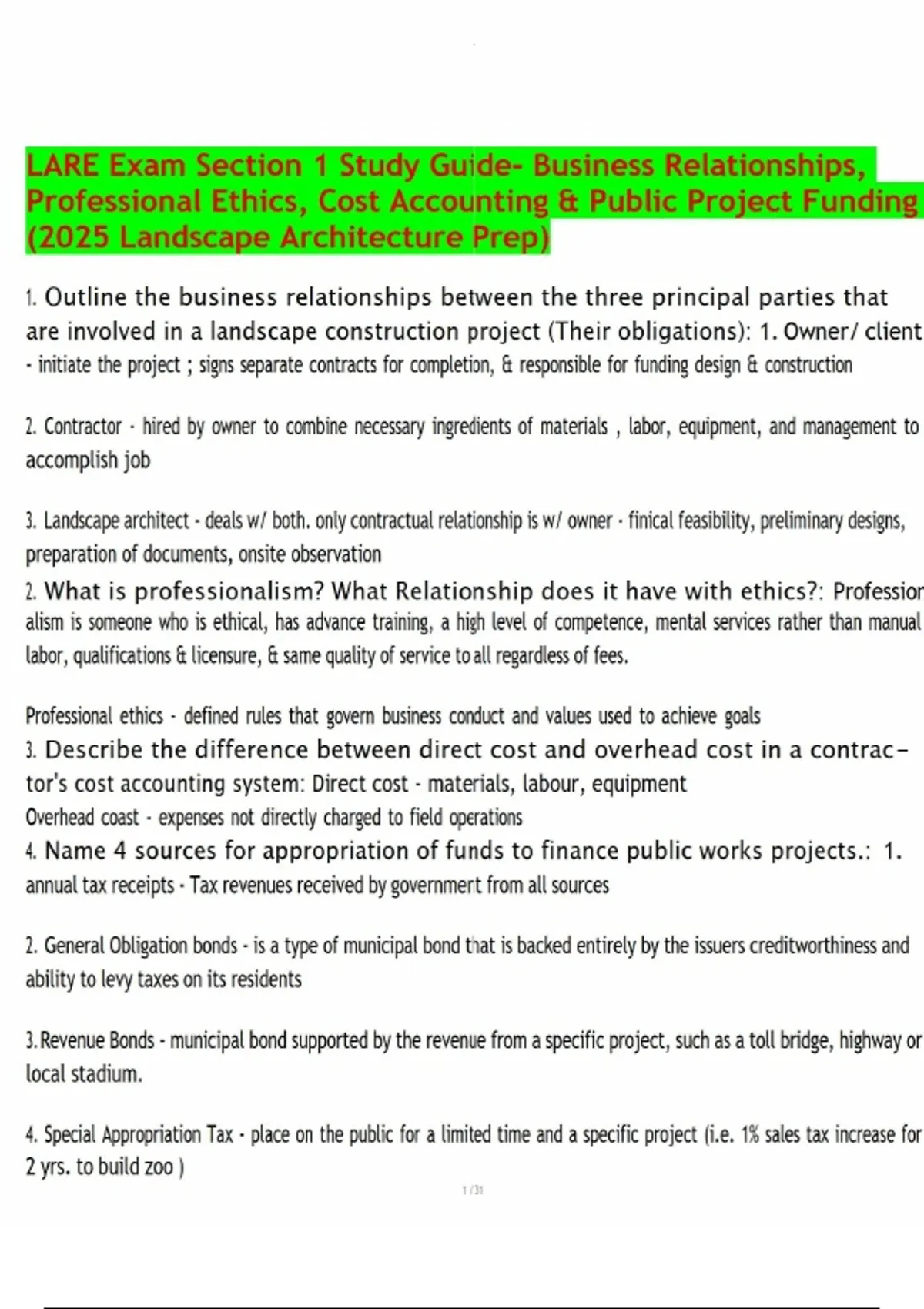 LARE Exam Section 1 Study Guide- Business Relationships, Professional Ethics, Cost Accounting & Public Project Funding (2025 Landscape Architecture Prep).pdf LARE Exam Section 1 Study Guide- Business Relationships, Professional Ethics, Cost Accounting & Public Project Funding (2025 Landscape Architecture Prep).pdf LARE Exam Section 1 Study Guide- Business Relationships, Professional Ethics, Cost Accounting & Public Project Funding (2025 Landscape Architecture Prep).pdf
