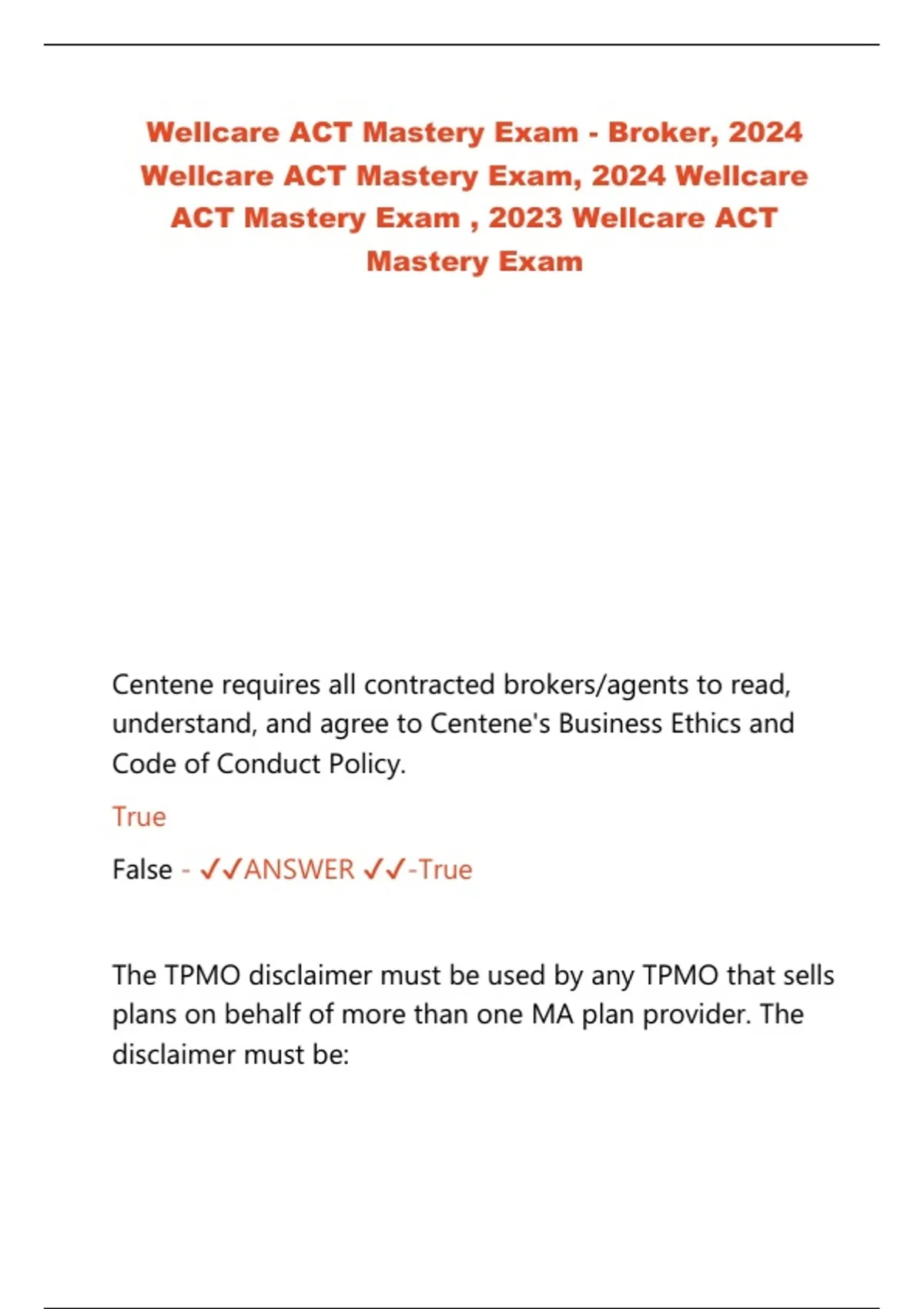 Wellcare ACT Mastery Exam, 2024 Wellcare