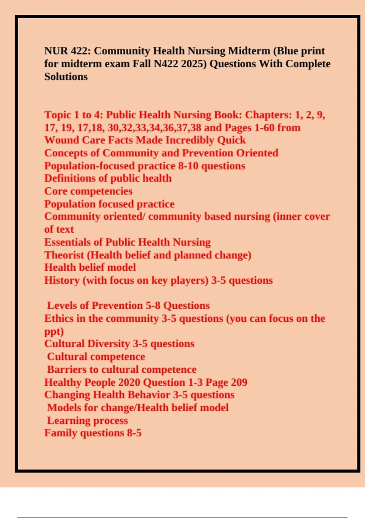 Topic 1 to 4: Public Health Nursing Book: Chapters: 1, 2, 9,