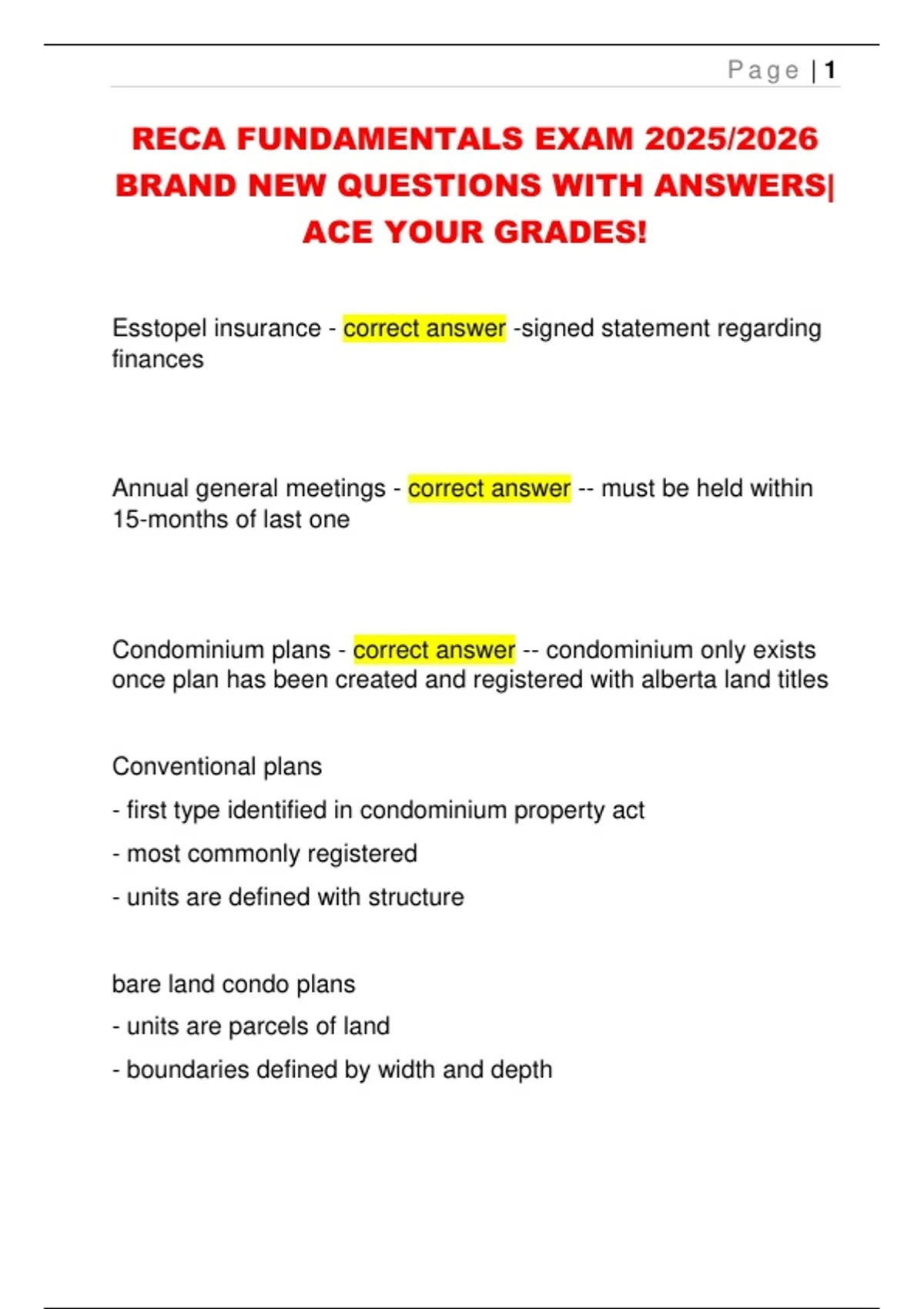RECA FUNDAMENTALS EXAM 2025/2026 BRAND NEW QUESTIONS WITH ANSWERS| ACE YOUR GRADES!