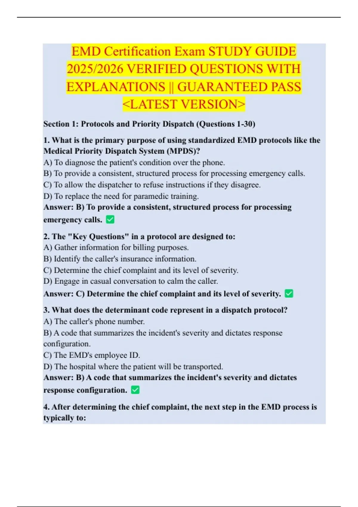 EMD Certification Exam STUDY GUIDE