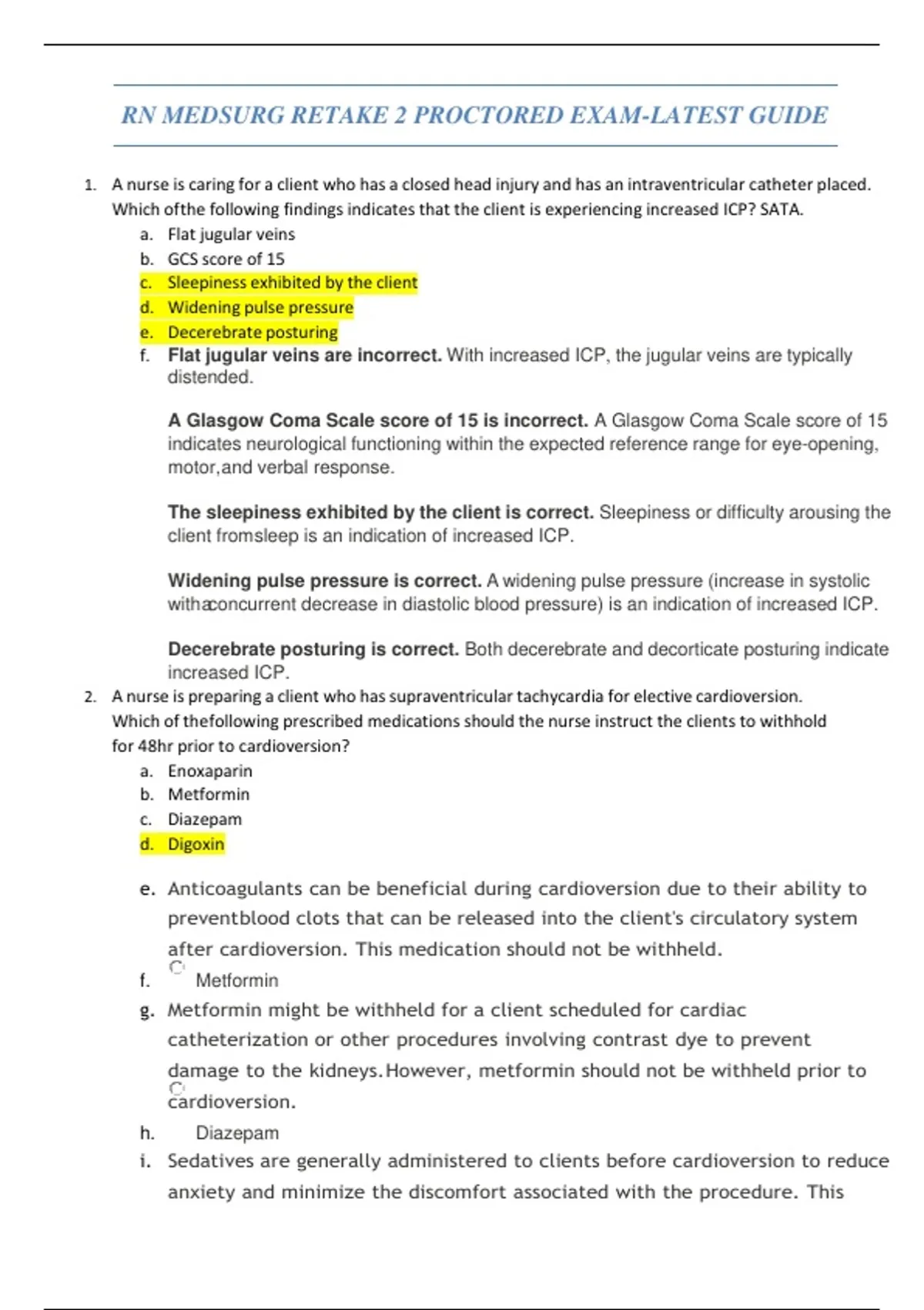 RN MEDSURG RETAKE 2 PROCTORED EXAM-LATEST GUIDE