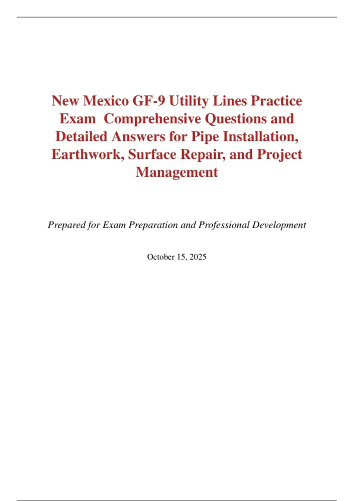 New Mexico GF-9 Utility Lines Practice Exam – Complete Question and Answer Guide for Pipe Installation, Earthwork, Surface Repair, and Project Management (2025 Edition)