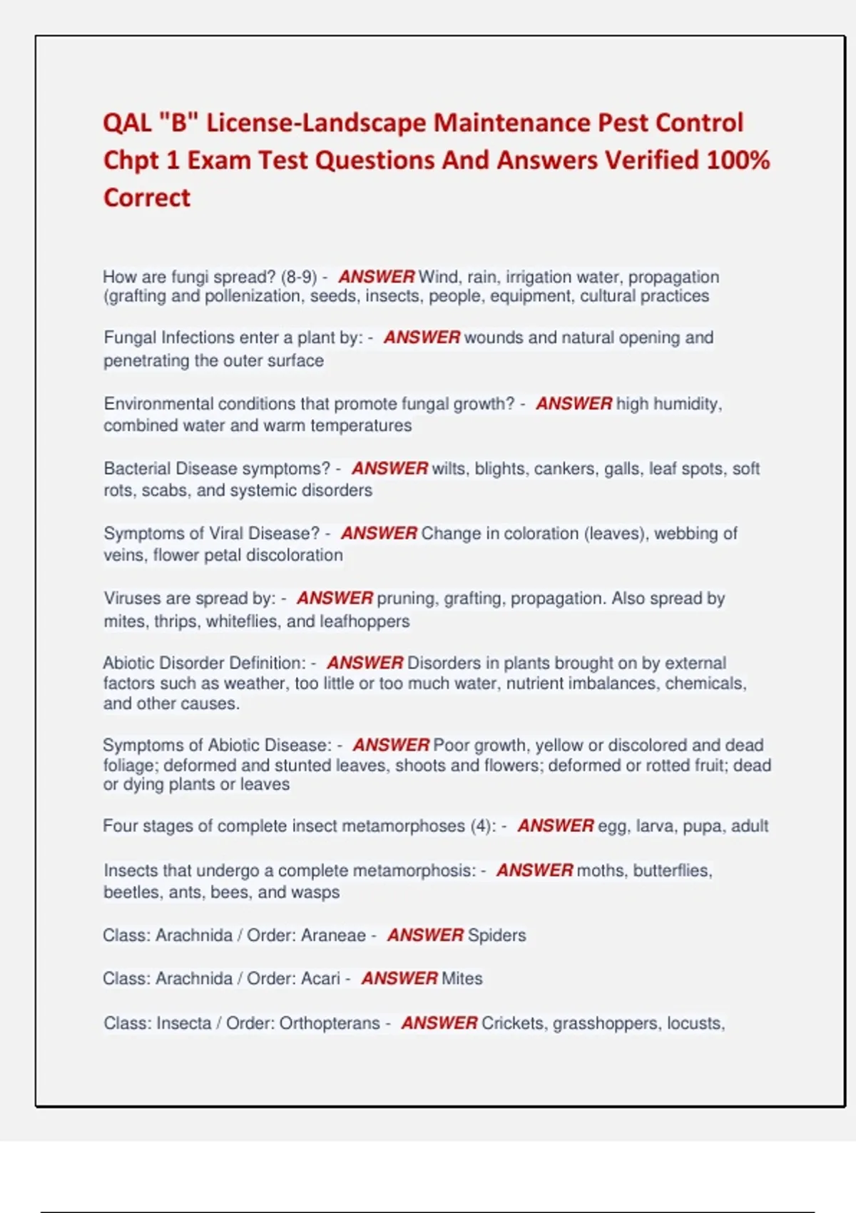 Symptoms of Abiotic Disease: - ANSWER Poor growth, yellow or discolored and dead