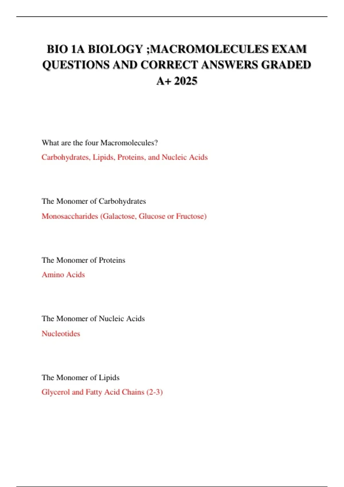 BIO 1A BIOLOGY ;MACROMOLECULES EXAM