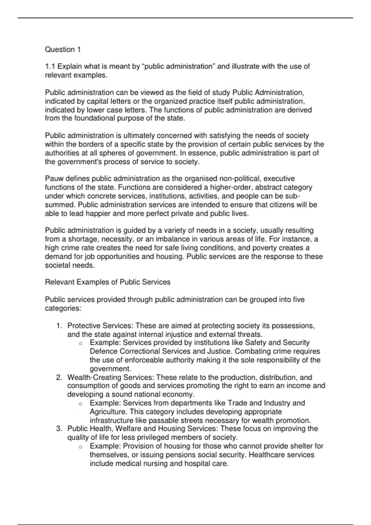1.1 Explain what is meant by “public administration” and illustrate with the use of