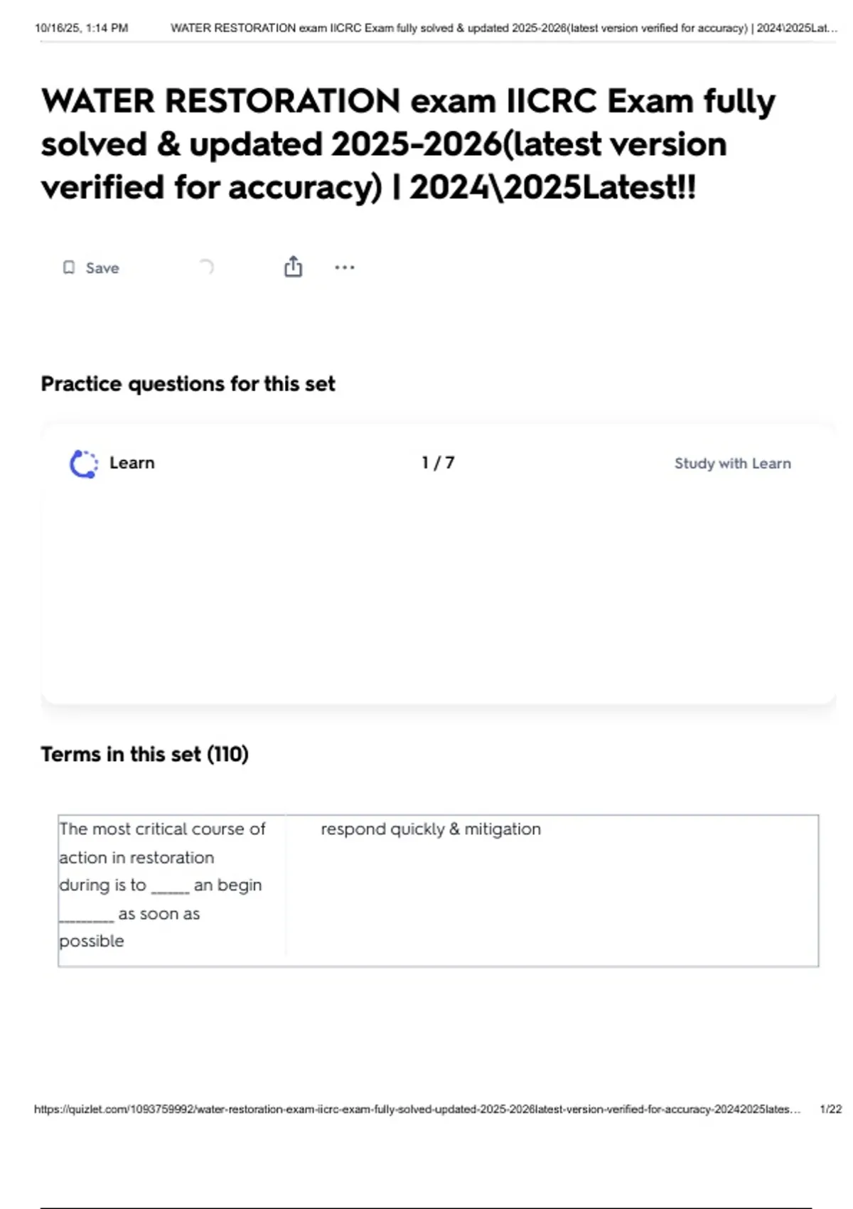 https://quizlet.com/1093759992/water-restoration-exam-iicrc-exam-fully-solved-updated-2025-2026latest-version-verified-for-accuracy-20242025lates… 1/22