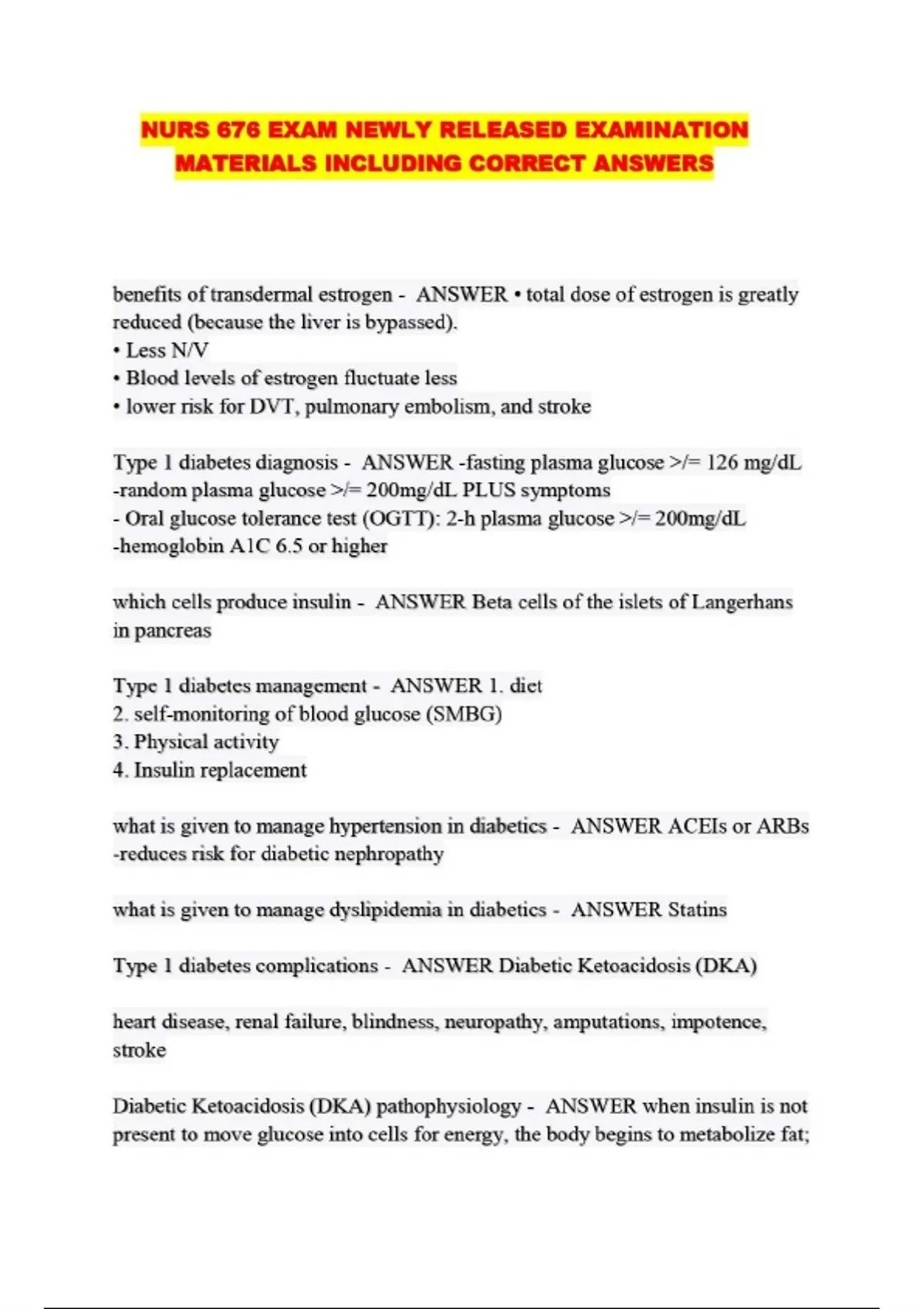 NURS 676 EXAM NEWLY RELEASED EXAMINATION MATERIALS INCLUDING CORRECT ANSWERS