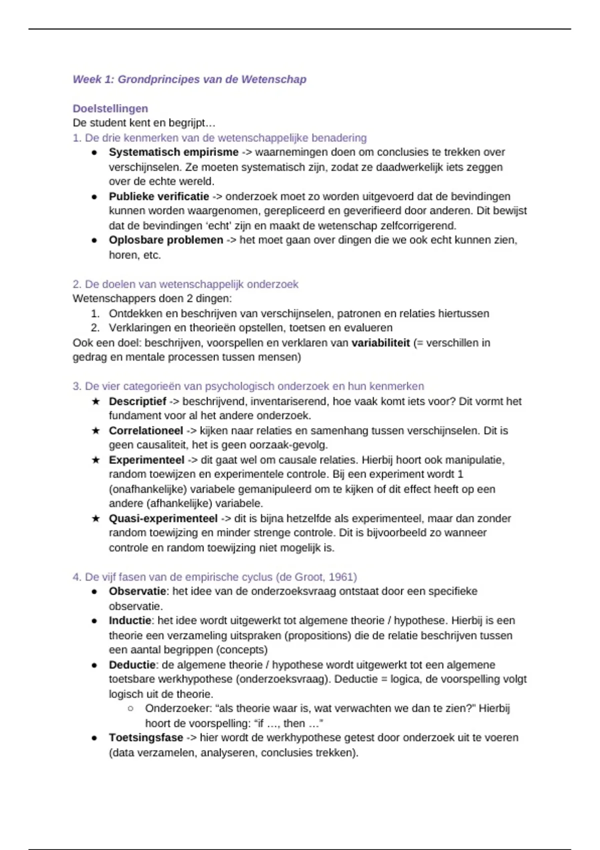 ○ Onderzoeker: “als theorie waar is, wat verwachten we dan te zien?” Hierbij