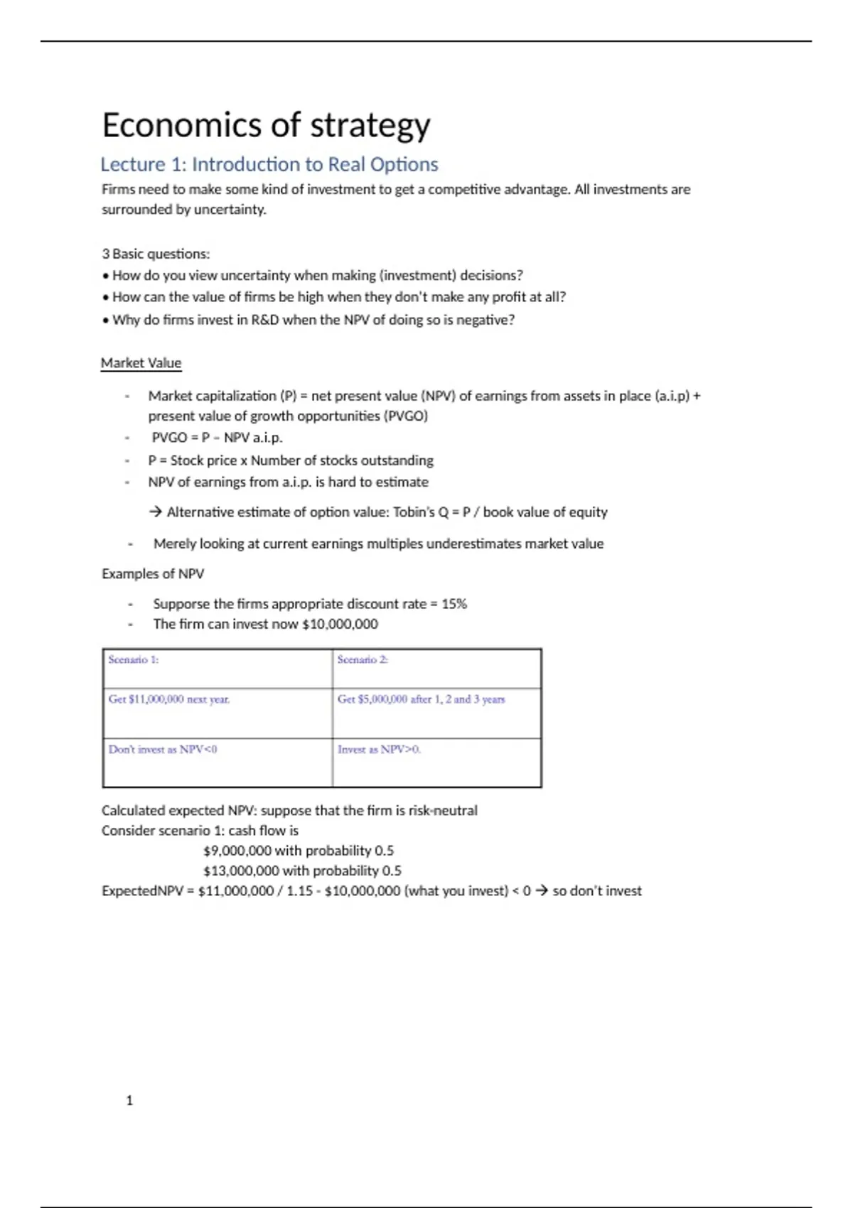 Lecture 1: Introduction to Real Options