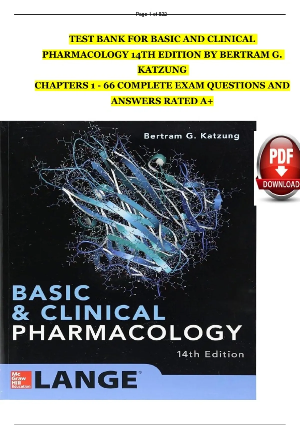TEST BANK FOR BASIC AND CLINICAL PHARMACOLOGY 14TH EDITION BY BERTRAM G. KATZUNG CHAPTERS 1 - 66 COMPLETE EXAM QUESTIONS AND ANSWERS RATED A+