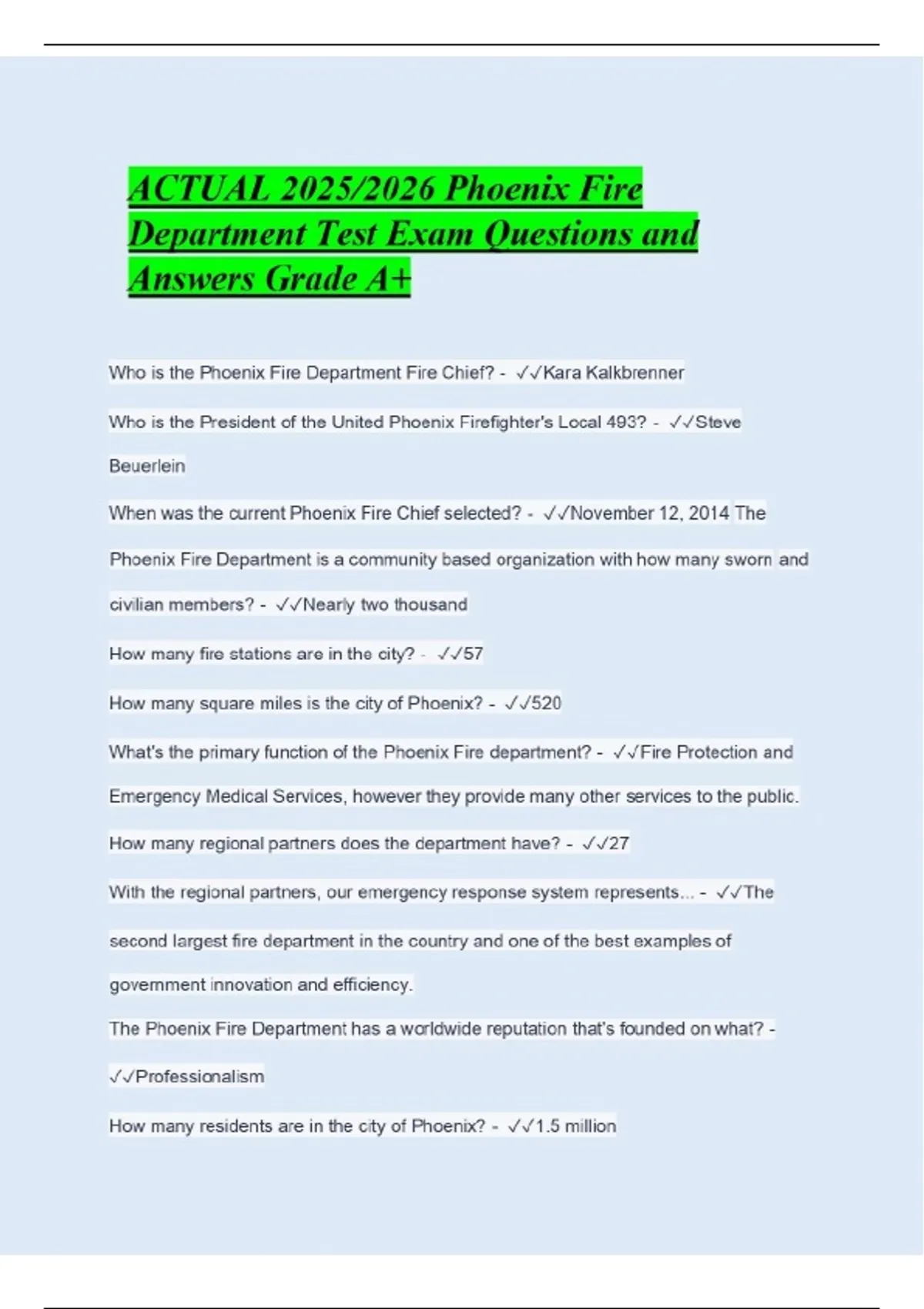 ACTUAL 2025/2026 Phoenix Fire Department Test Exam Questions and Answers Grade A+