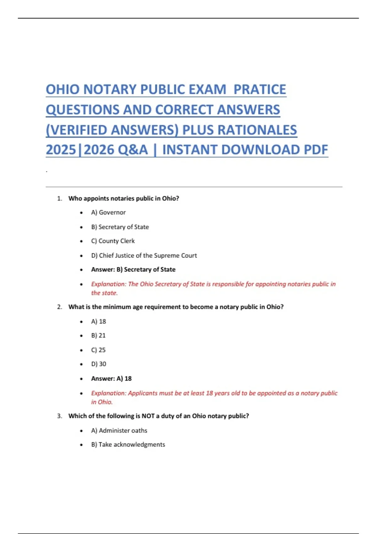 OHIO NOTARY PUBLIC EXAM PRATICE