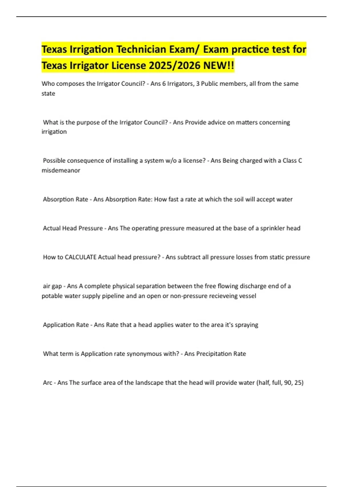Texas Irrigation Technician Exam/ Exam practice test for Texas Irrigator License 2025/2026 NEW!!Texas Irrigation Technician Exam/ Exam practice test for Texas Irrigator License 2025/2026 NEW!!Texas Irrigation Technician Exam/ Exam practice test for Texas Irrigator License 2025/2026 NEW!!Texas Irrigation Technician Exam/ Exam practice test for Texas Irrigator License 2025/2026 NEW!!Texas Irrigation Technician Exam/ Exam practice test for Texas Irrigator License 2025/2026 NEW!!Texas Irrigation Technician Exam/ Exam practice test for Texas Irrigator License 2025/2026 NEW!!